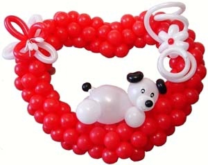 Such a heart of balloons with…a Doggy or another cute figurine! Its size is 1,20 to 1,20 meter!