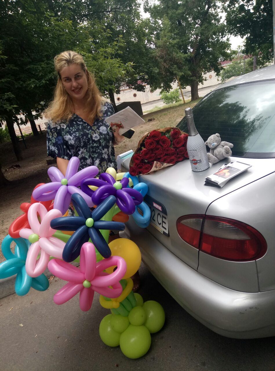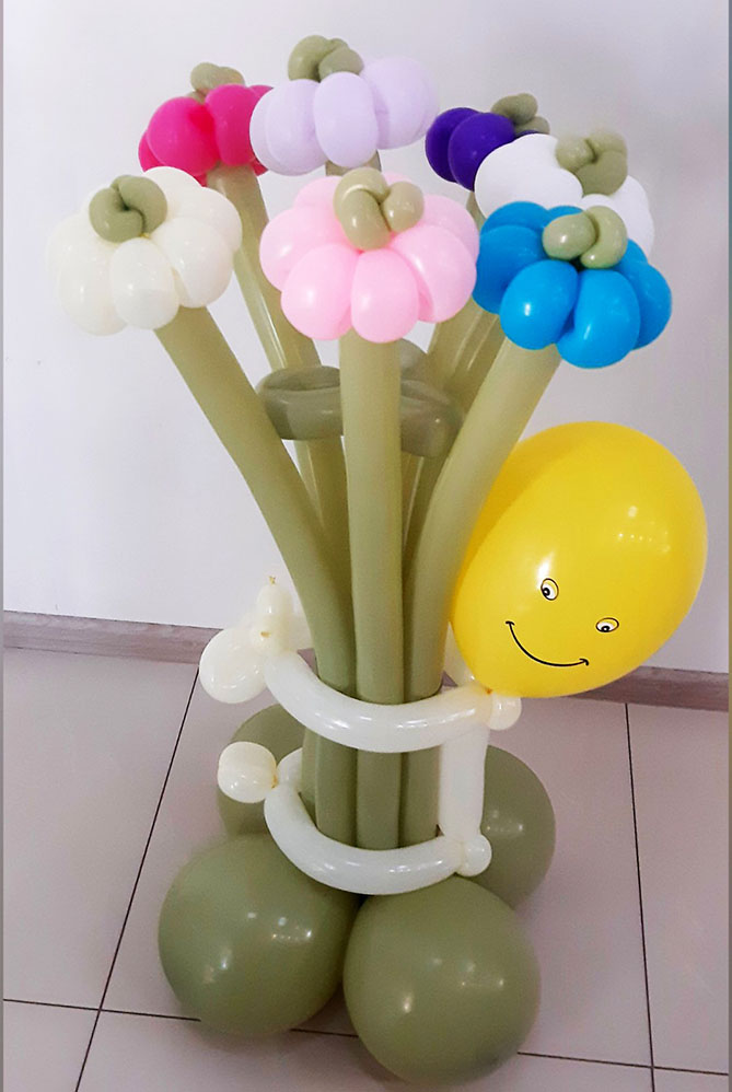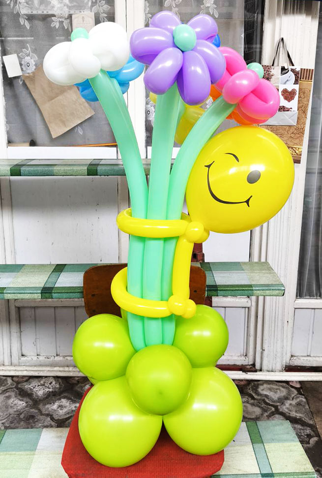 This cute funny courier who delivers the colorful "bouquet" will stay as a recipient’s guest! He brings 7 flowers made with balloons.