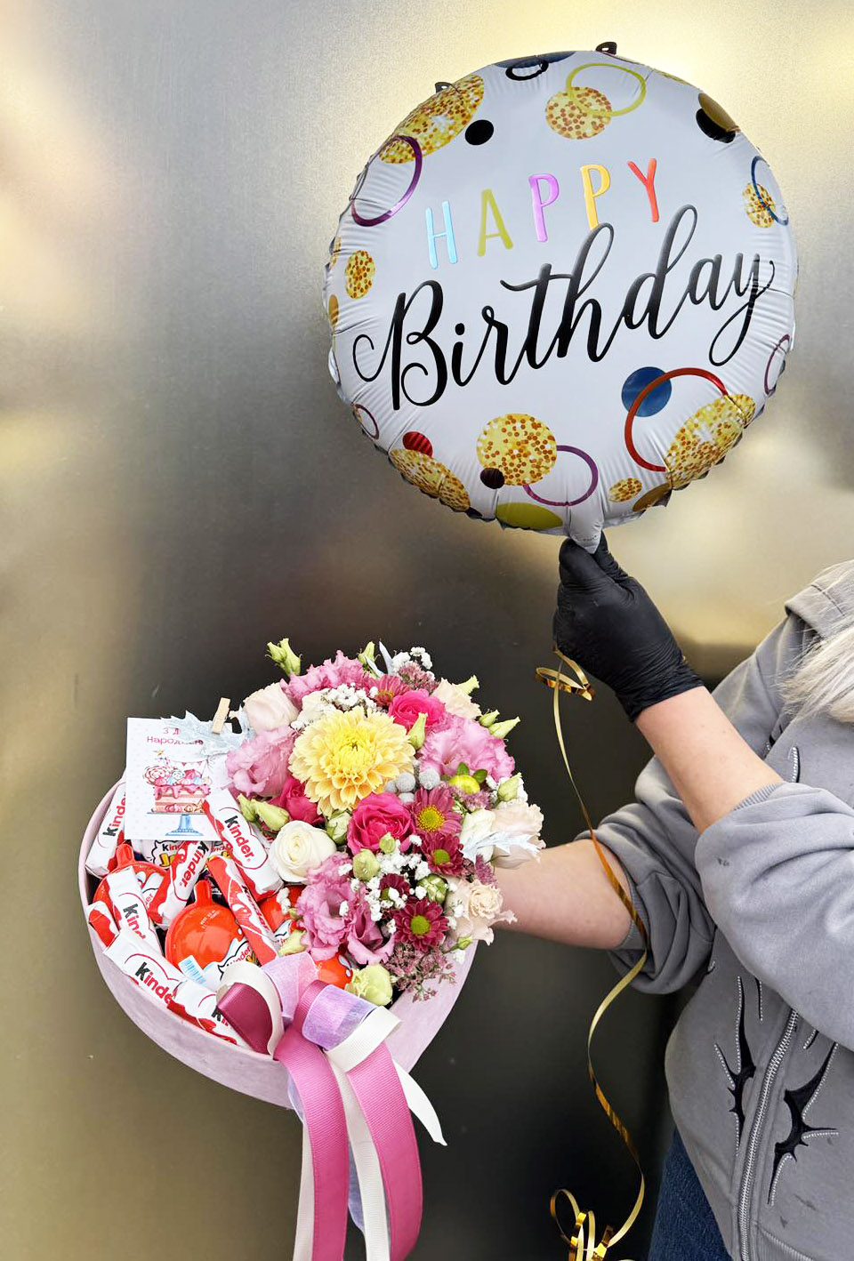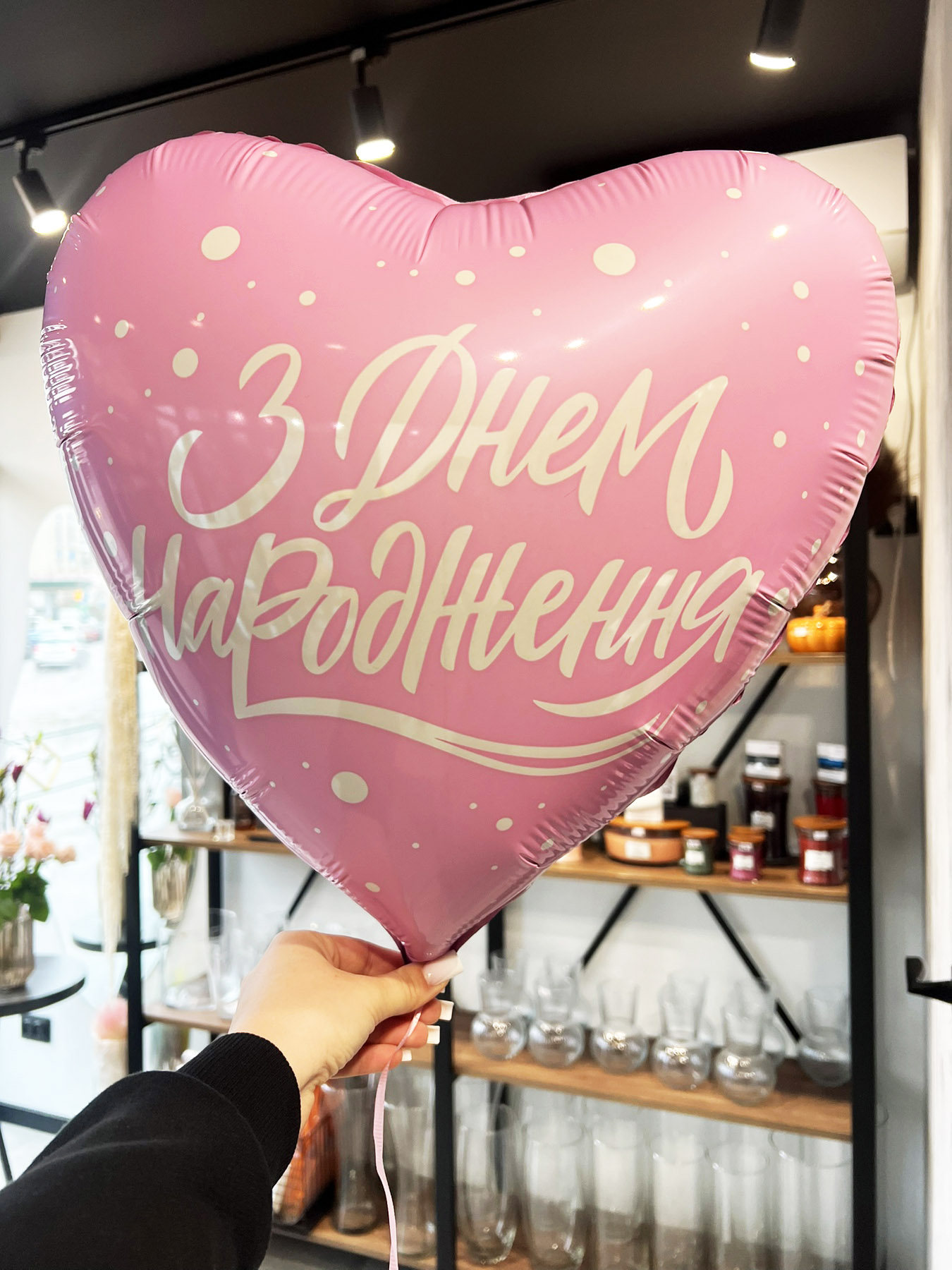 A Happy Birthday balloon. Words can be written either in English or Ukrainian, but they mean the same!