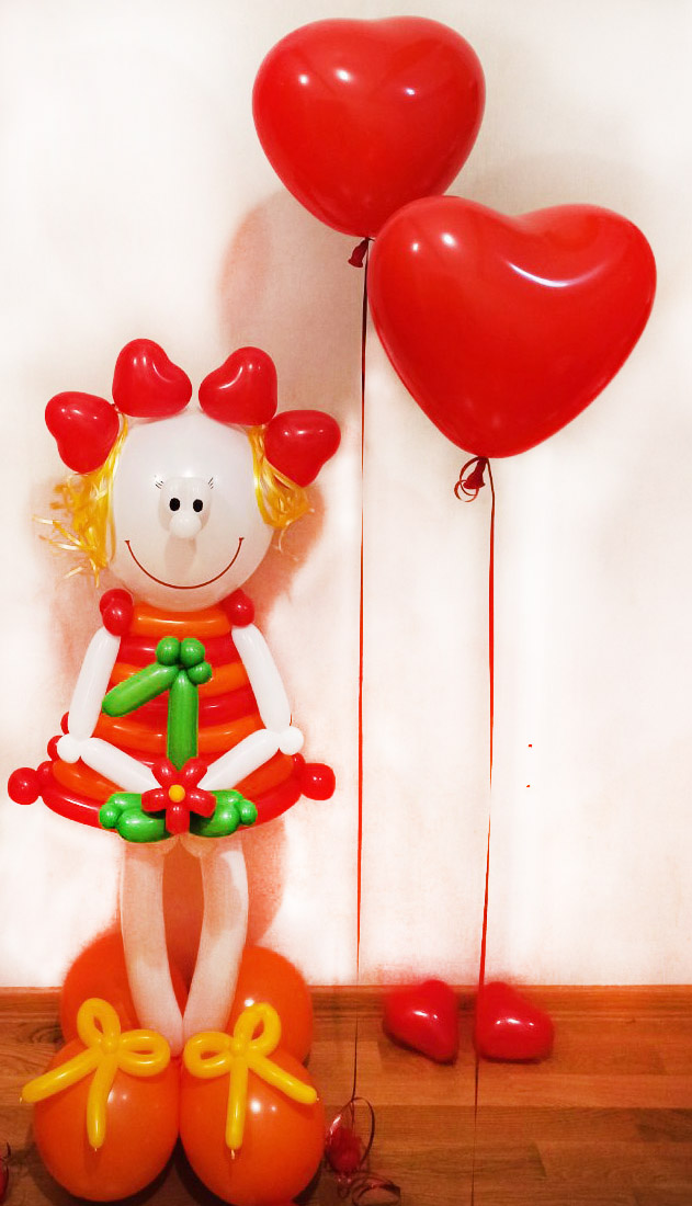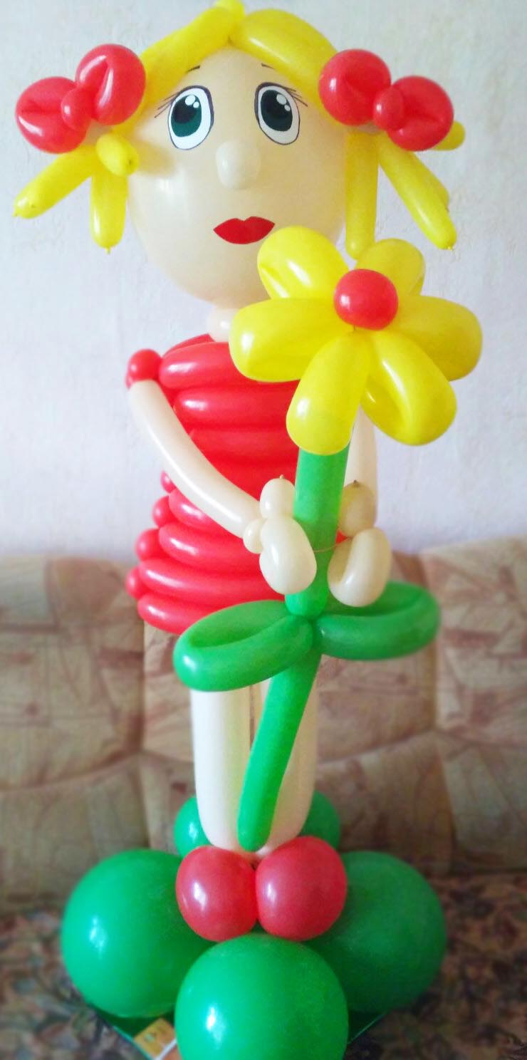It is hard to believe that such a girl can be made completely of air baloons. But this is true! Such a lady is 70-80 cm height and is standing steady and it is so pleasant to see such a charming creature early in the morning when you just wake up. A good mood is guaranteed.