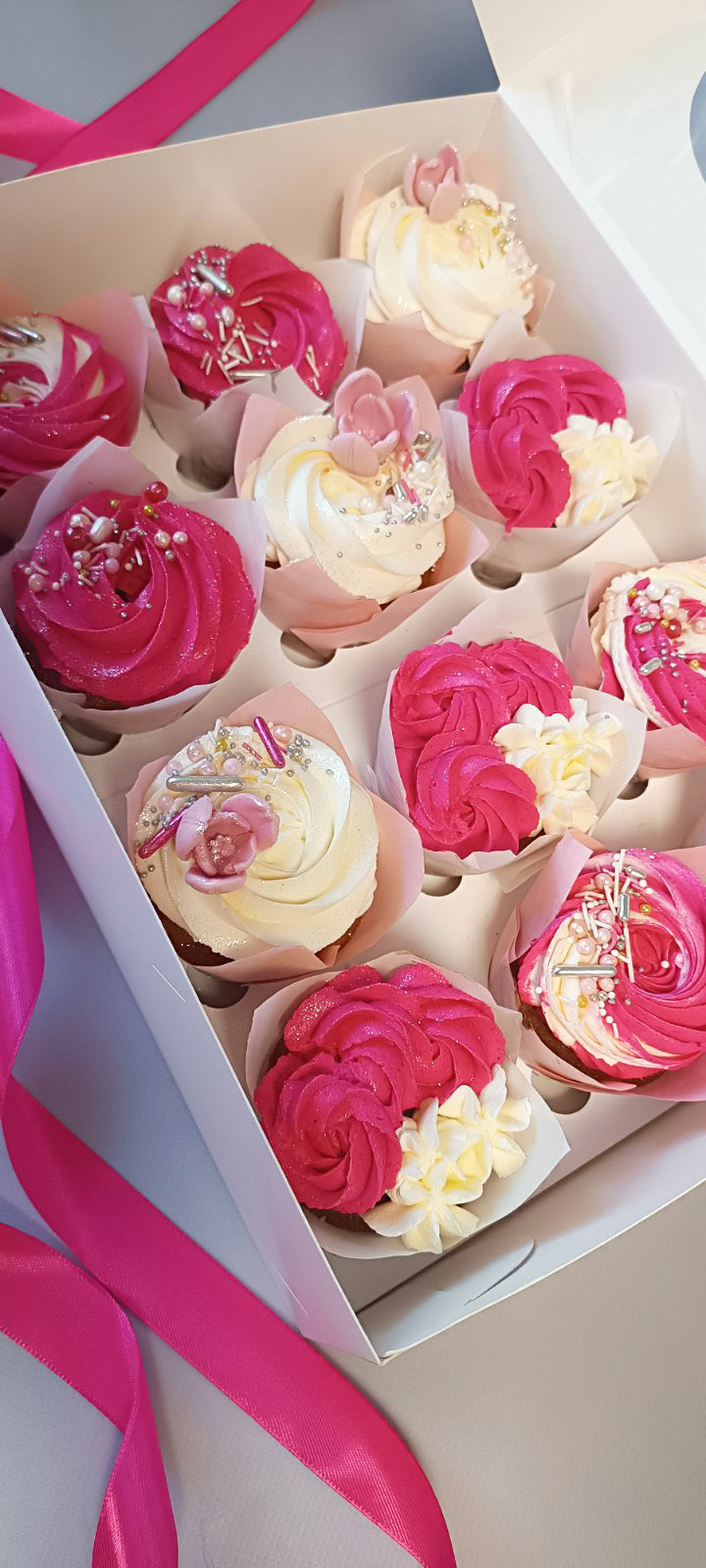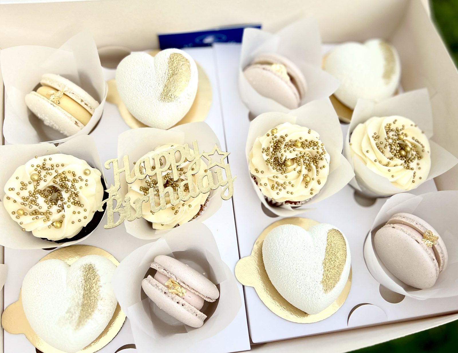 A box with 12 assorted mini cakes, 80-100 grams each.