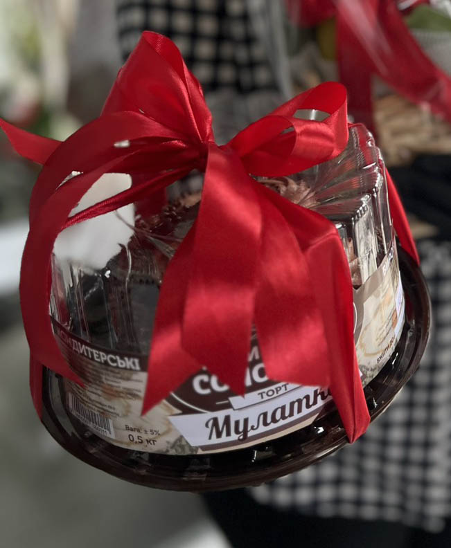 2) "Standard" Chocolate cake will be purchased at a local supermarket. Needles to say, that we will select it from those that are available at the moment. So, photos of the chocolates cake at this page are just samples of those that can be purchased. Its decor can be different. Those cakes are producing by various brands, such as Vatsak, Roshen, etc., or it's cakes from a local pastry shops.
