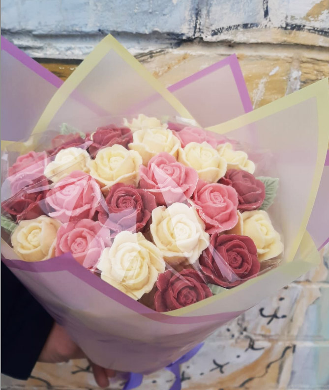 Our highly professional Chocolatier works on the arrangements at a shop and will mail bouquet to our Courier for delivery as soon as it is ready. Needless to say, they such gift should be absolutely fresh and it means that your bouquet will be making after receiving the order. So, please, give us at least 4-5 days to go through all these steps and place order 4-5 days prior of the delivery date.