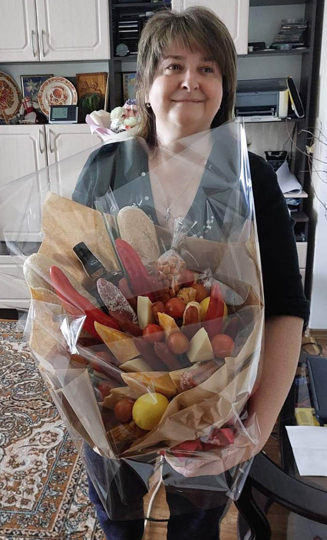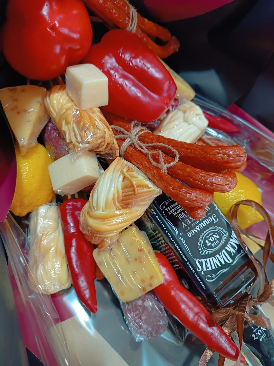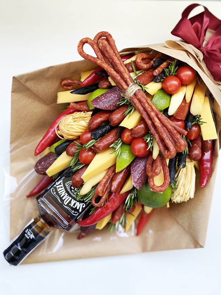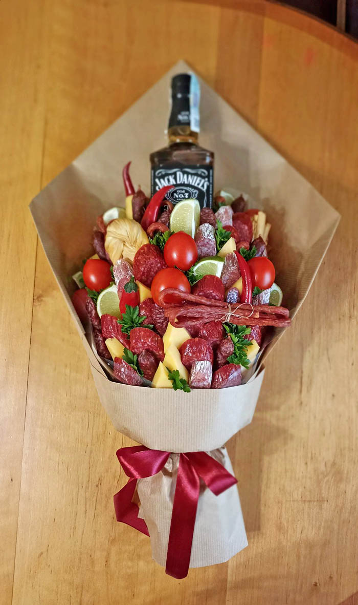 Please, notice, that the made bouquet can look a bit different than the one at the photo. Each desighner makes it using her personal views, taste and decorations. So, it can be a bit different, but at the similar same time look fun, original and ... tasty! Moreover, it happens so, that a newly created and delivered bouquet is even more interesting, funny, bigger and more beautiful than the original one!