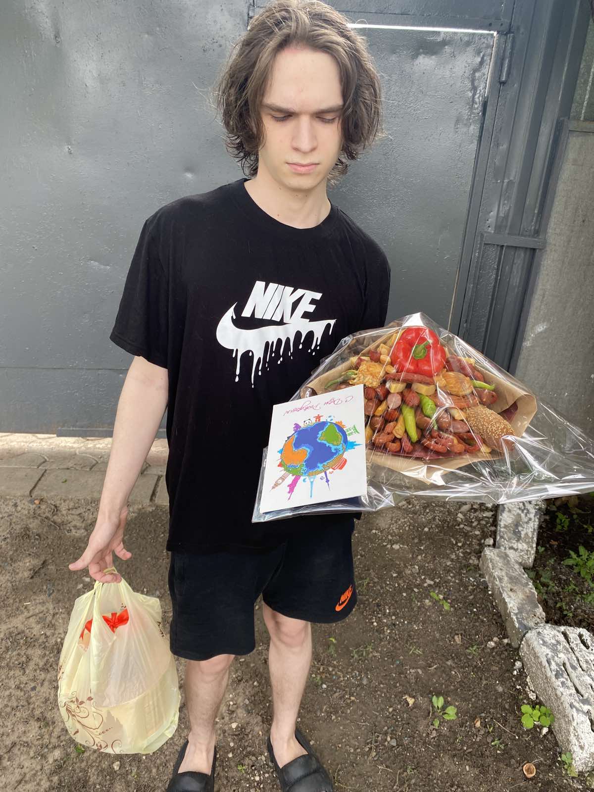 Please, notice, that the made bouquet can look a bit different than the one at the photo. Each desighner makes it using her personal views, taste and decorations. So, it can be a bit different, but at the similar same time look fun, original and ... tasty! Moreover, it happens so, that a newly created and delivered bouquet is even more interesting, funny, bigger and more beautiful than the original one!