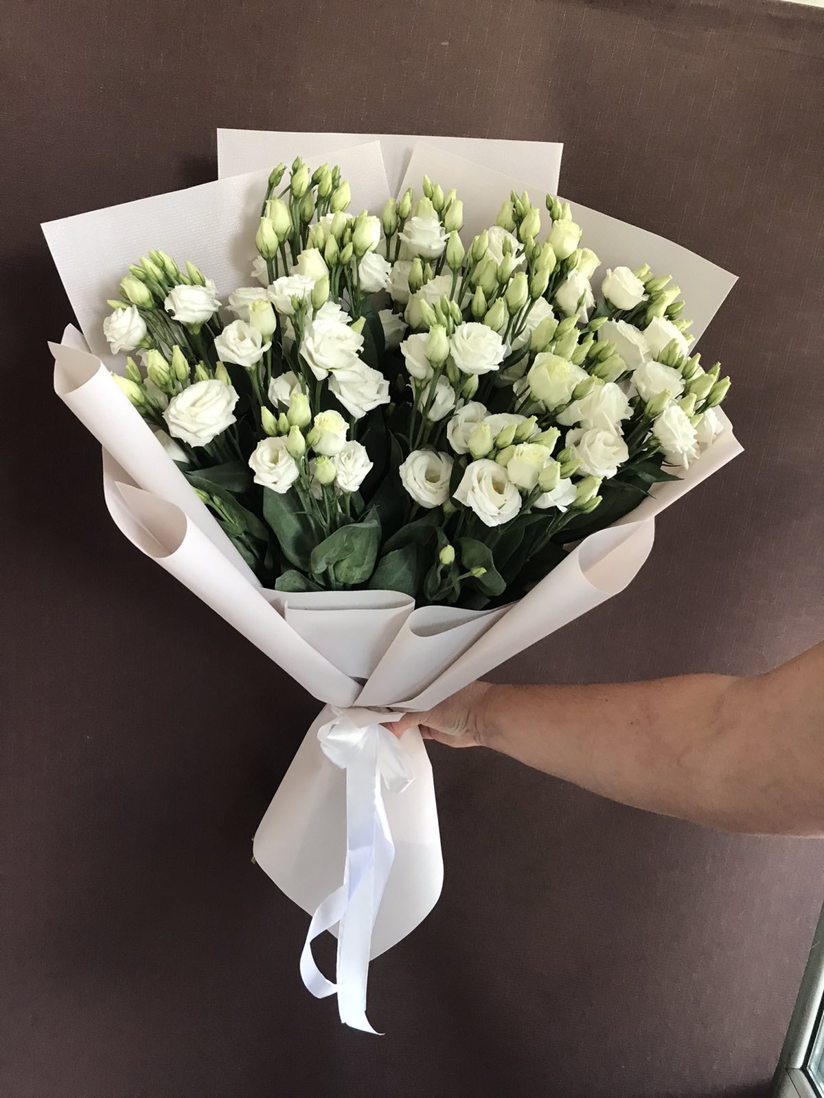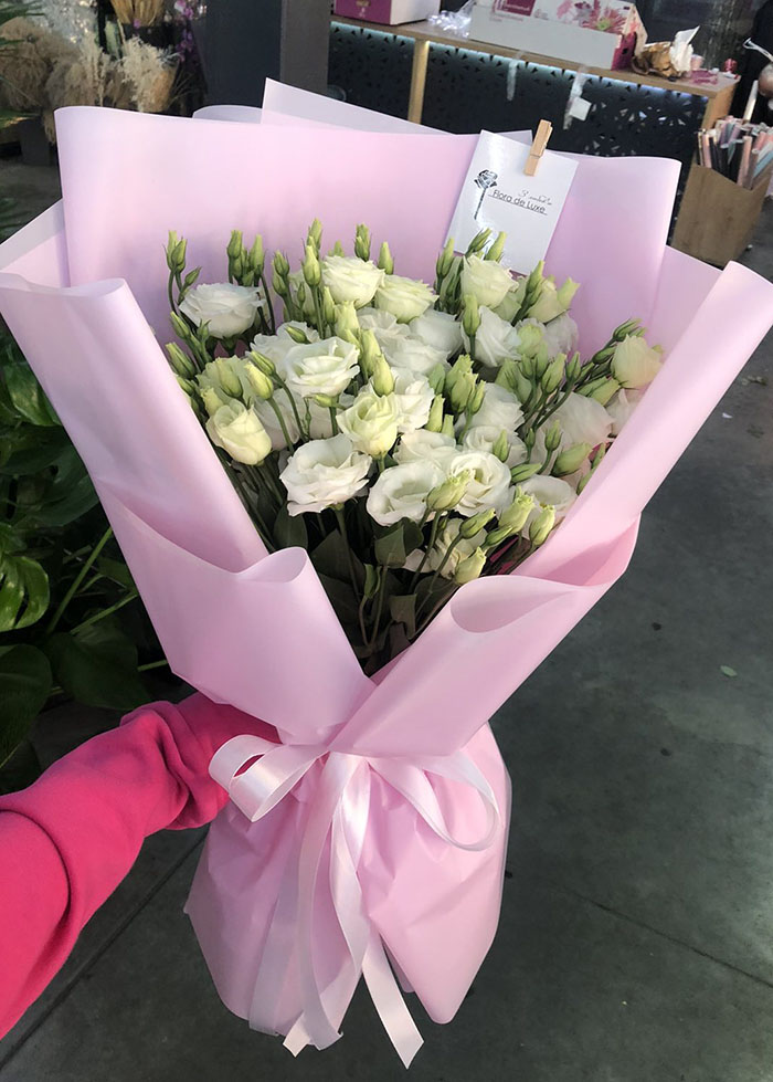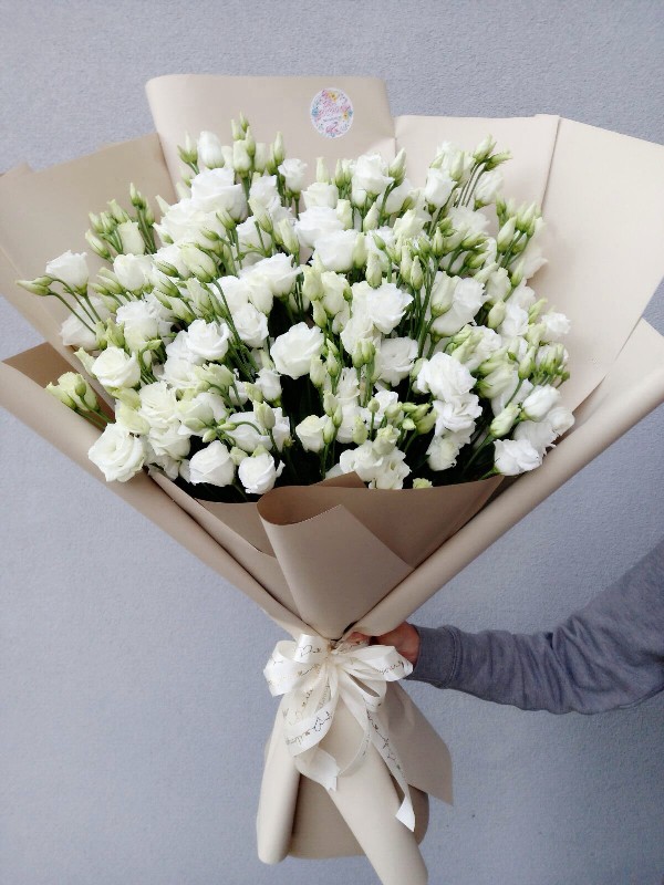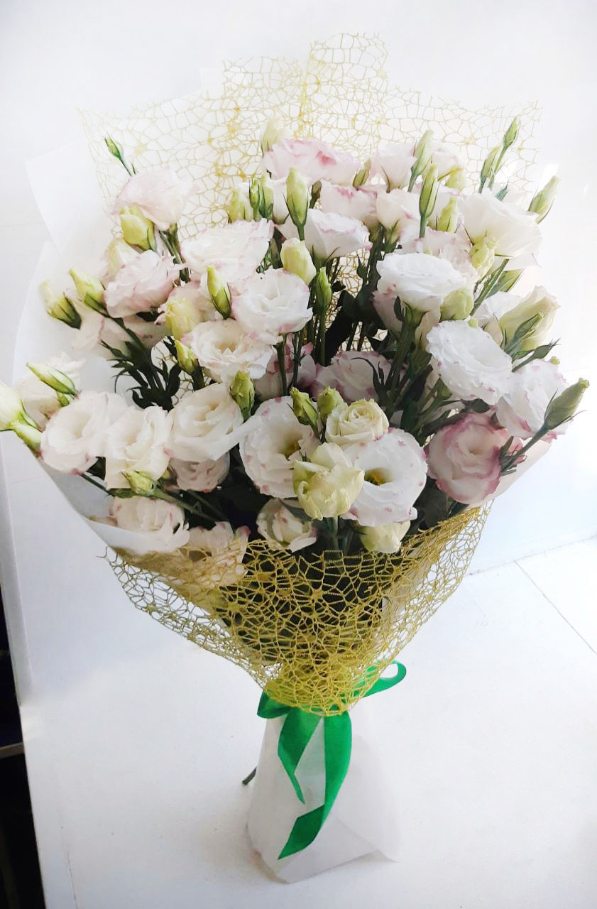 Even several branches make it posh and luxurious. With some buds open and some waiting for their time to blossom and please you. Every branch has several little ones with leaves and the bouquet of 15 flower branches looks really large and luxury. And you can imagine the look of eustoma bouquet if you take more.
