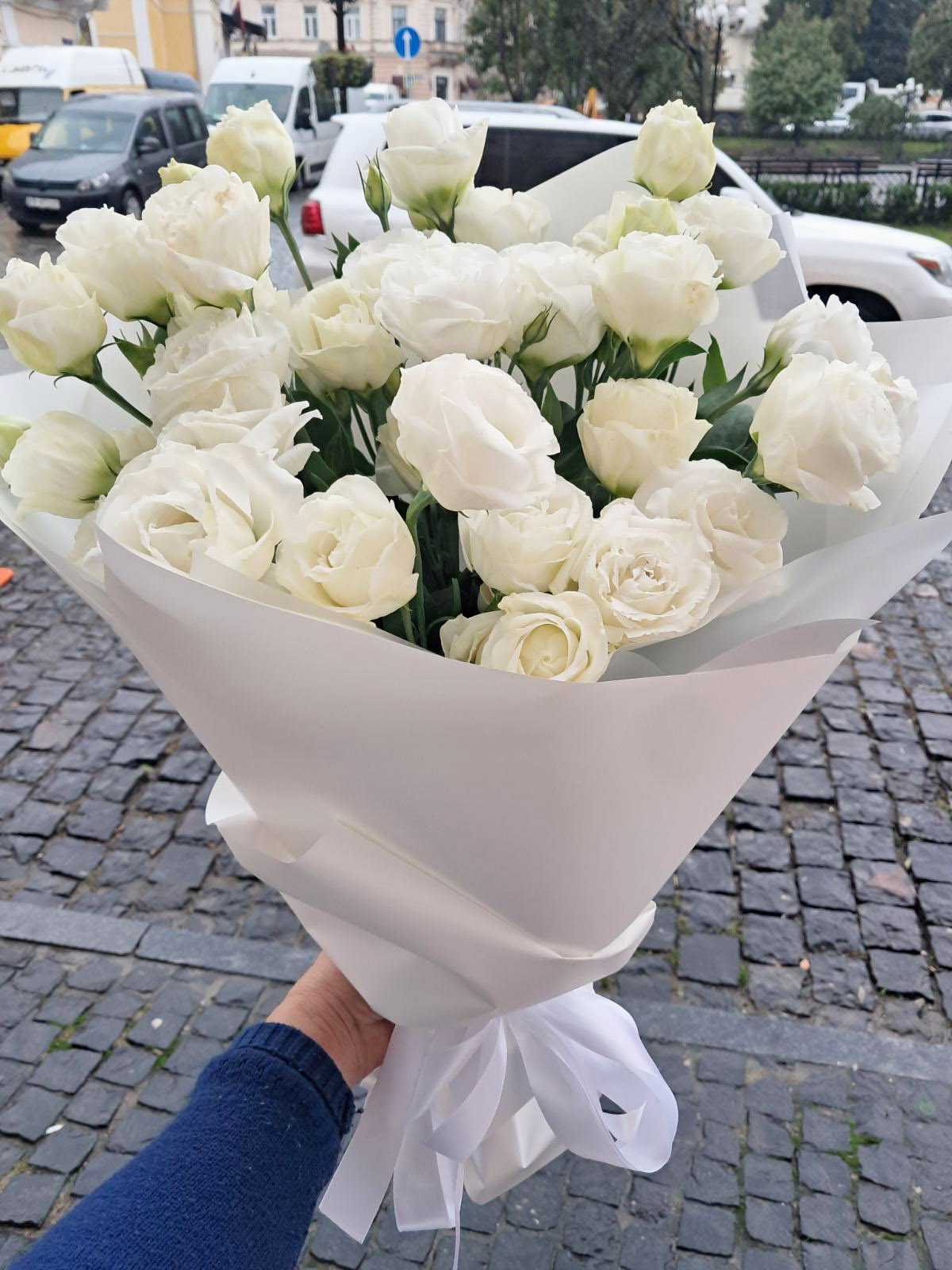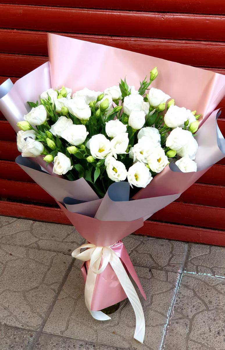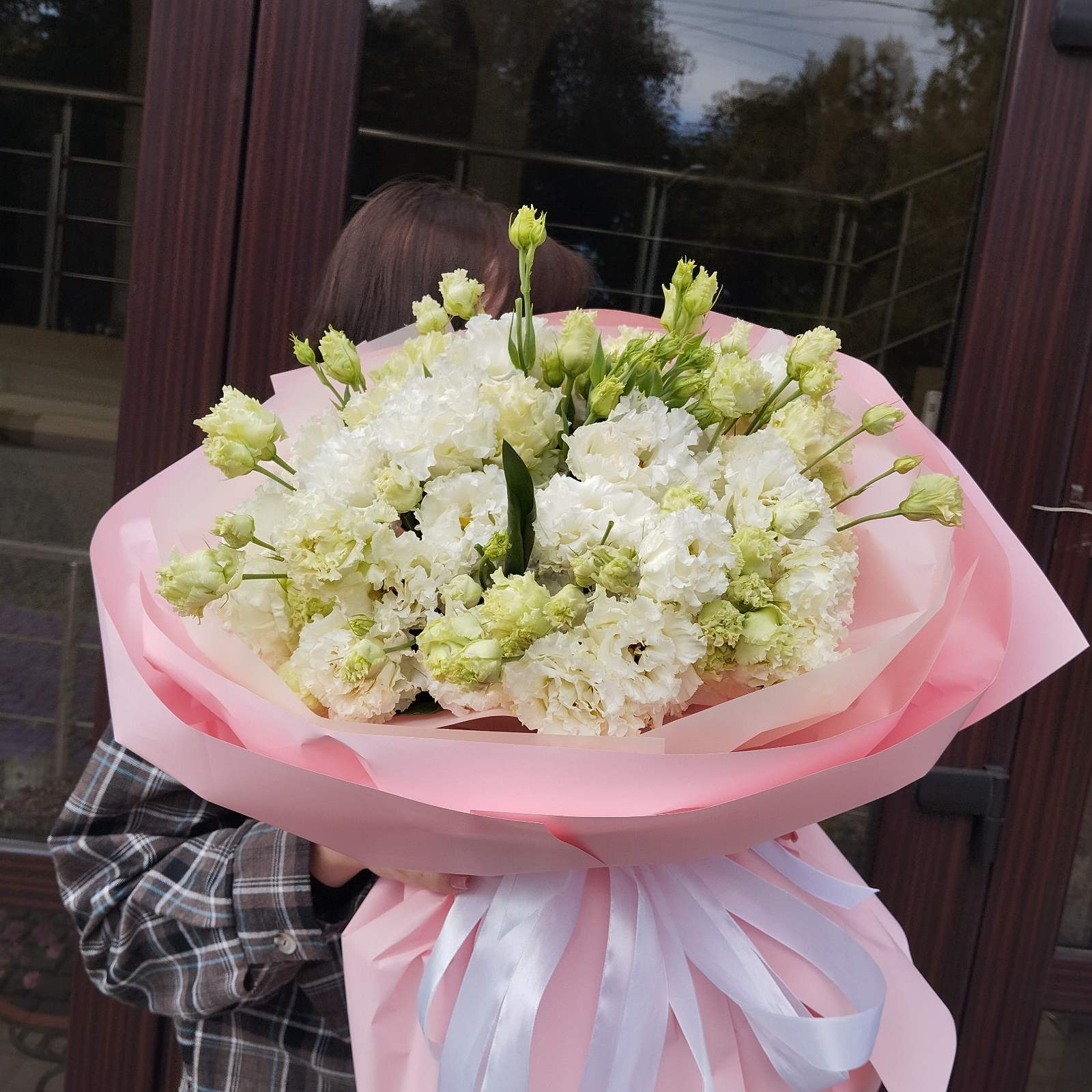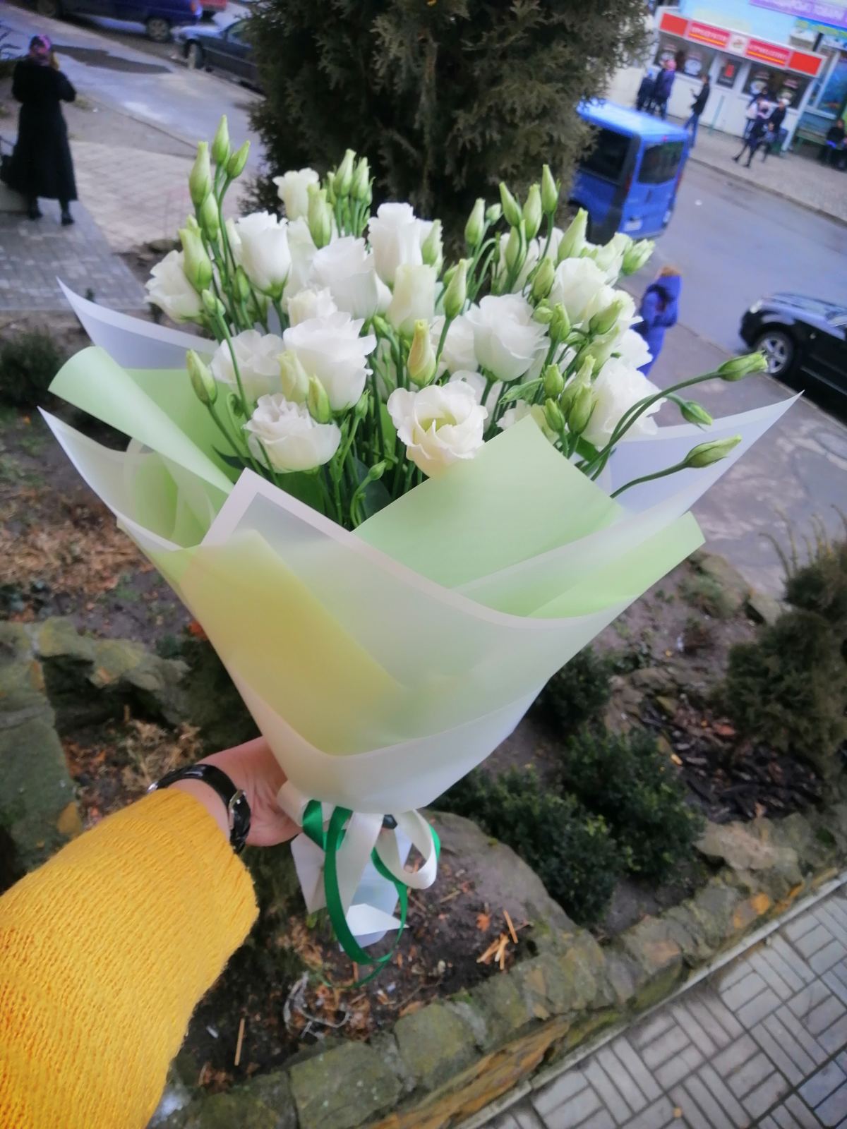 Even several branches make it posh and luxurious. With some buds open and some waiting for their time to blossom and please you. Every branch has several little ones with leaves and the bouquet of 15 flower branches looks really large and luxury. And you can imagine the look of eustoma bouquet if you take more.