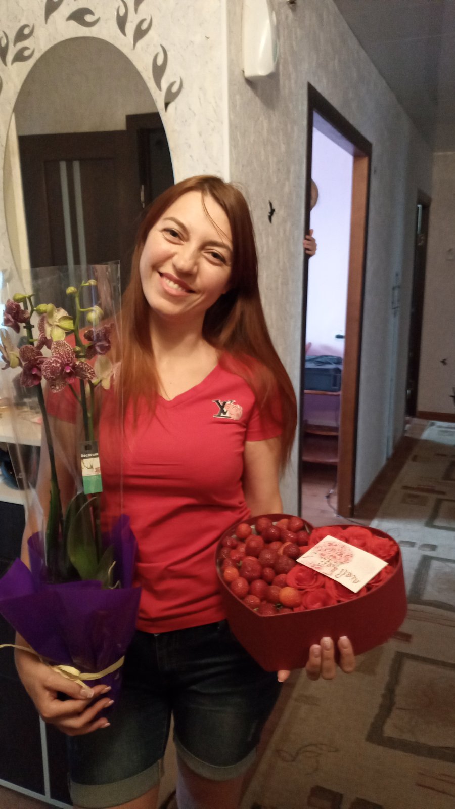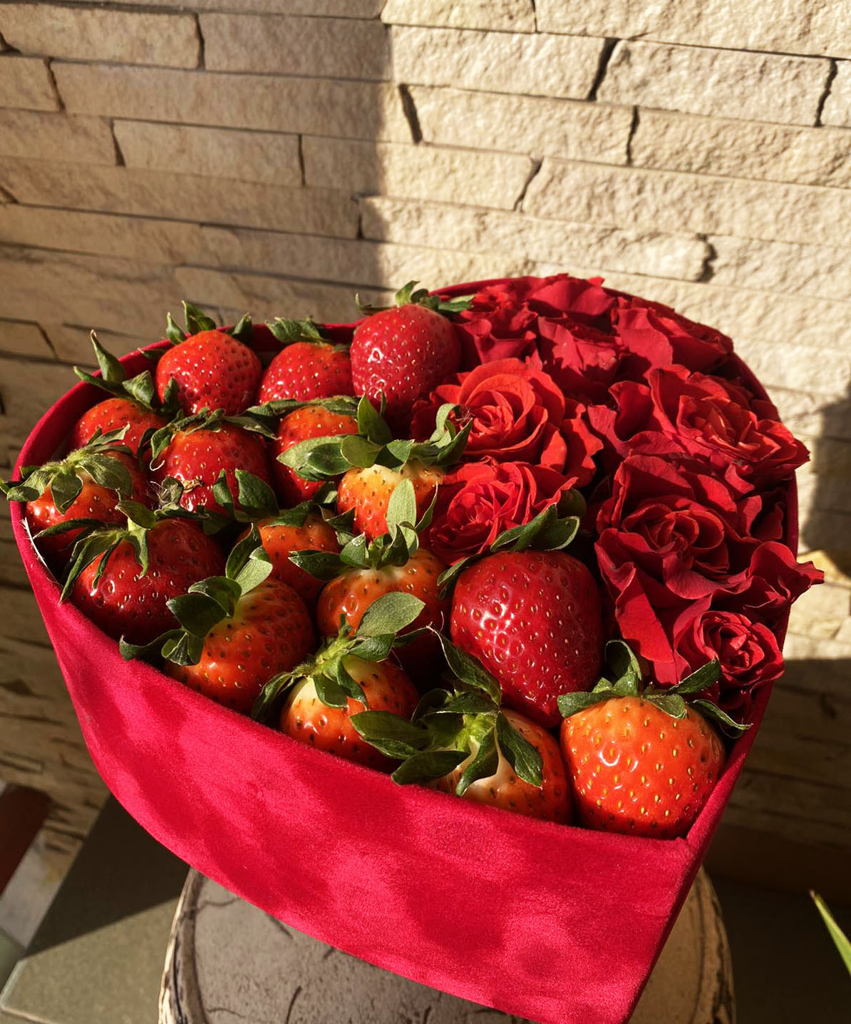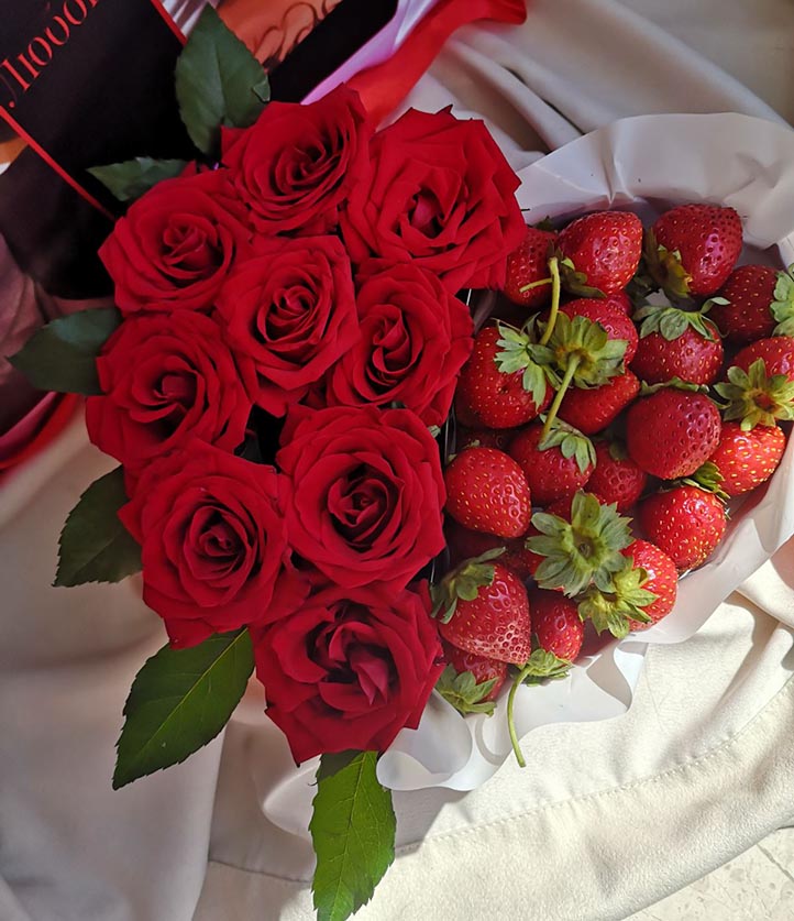 13 x Red roses 600 x grams of strawberries (like at our photo)