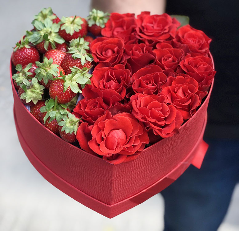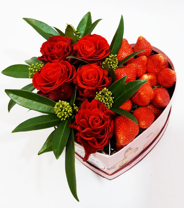 Such a lovely gift-box can give you this and even more! Red roses, scarlet strawberries...And the shape of the box shows the feelings of the sender!