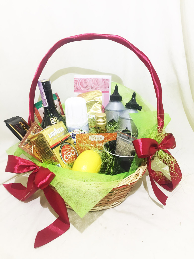 Everything will be packed into a basket and decorated.