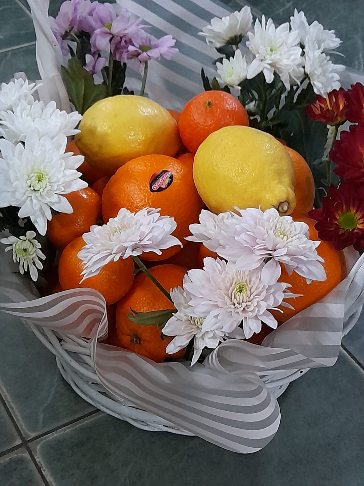 As a florists we buy all other products at the local shops and supermarkets. Tangerines are normally available at our supermarkets since autumn until summer, however we can find oranges actually any time there!