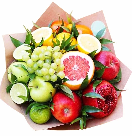 Now these most popular colors are at the edible fruits bouquet. The one that will be created for your friend, relative or beloved is going to be really beautiful and appetizing! The composition may very a little at a different seasons, but we'll pick the best fruits: high quality, nice looking and fresh.