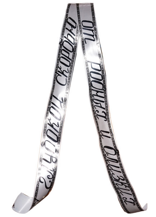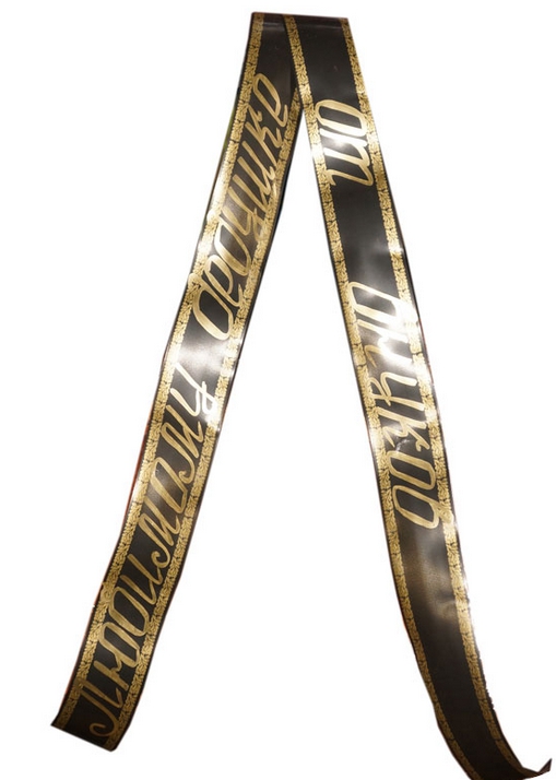 The black ot white mouring strip with a short text of condolences can be added to flowers due to Ukrainian tradition.