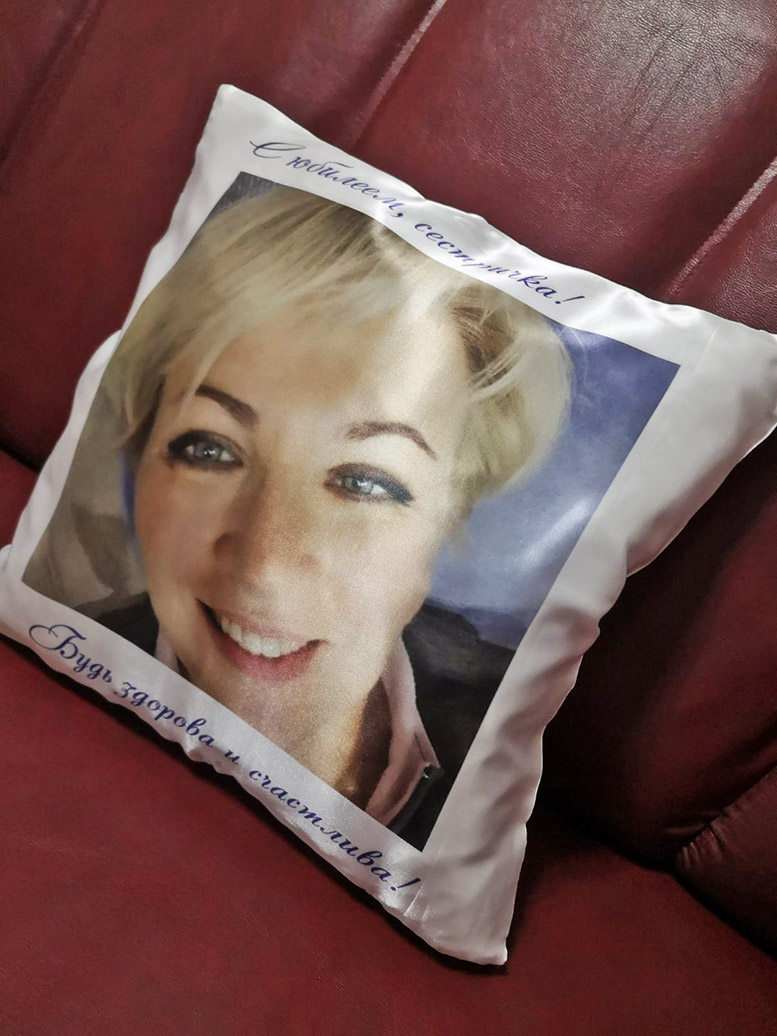 We can make the pillow with an inscription from you. It can be made on the photo too.
