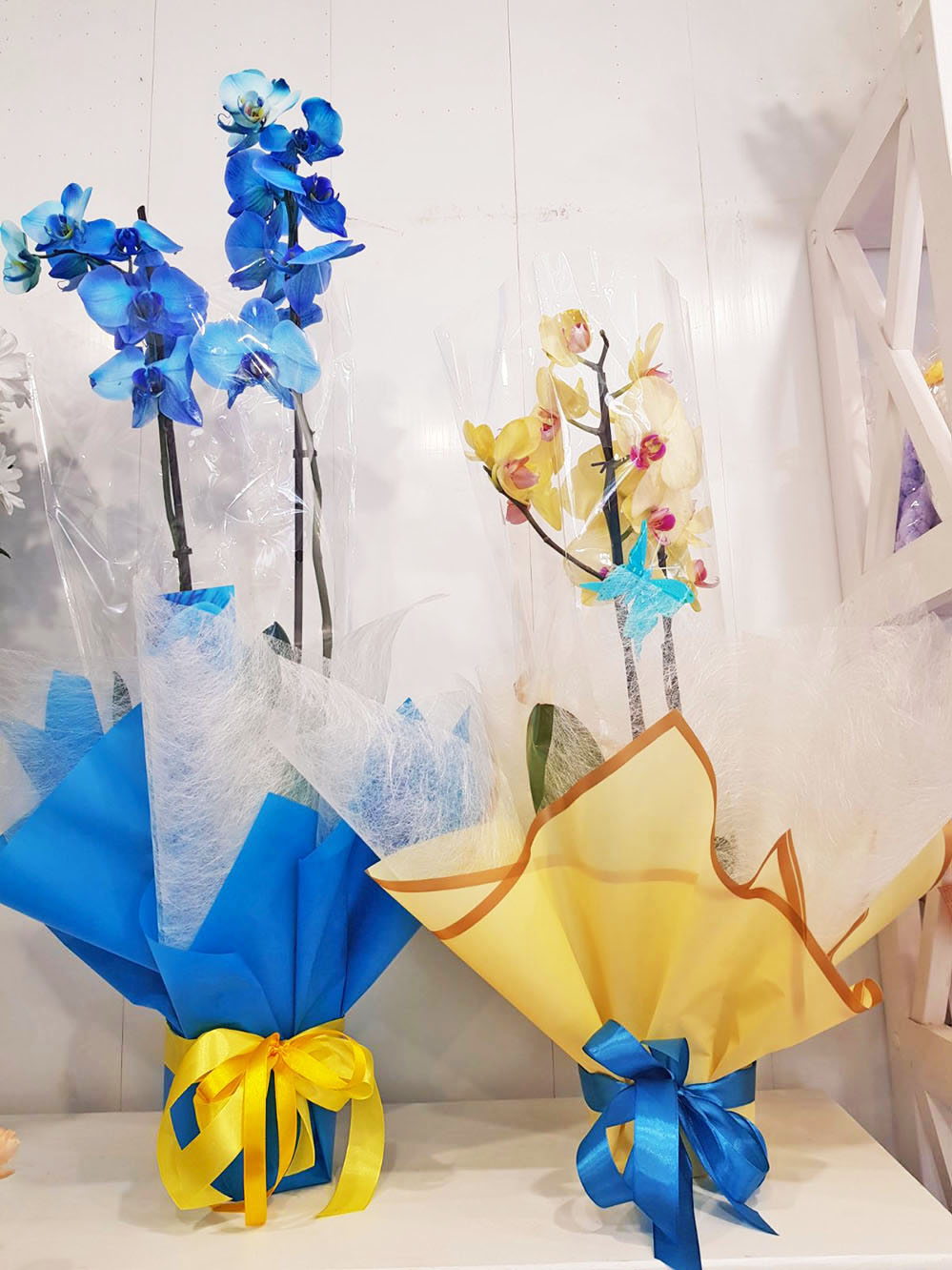 1/ Blue orchids do not exist in the nature and have not yet been created by breeders. Such an unusual color is achieving by special manipulations with a white orchid by using a special floristic paint, which saturates the roots of a white orchid for a long time. Thus, after the blue orchid is watered with ordinary water, its new flowers will lighten and eventually return to their original white color.