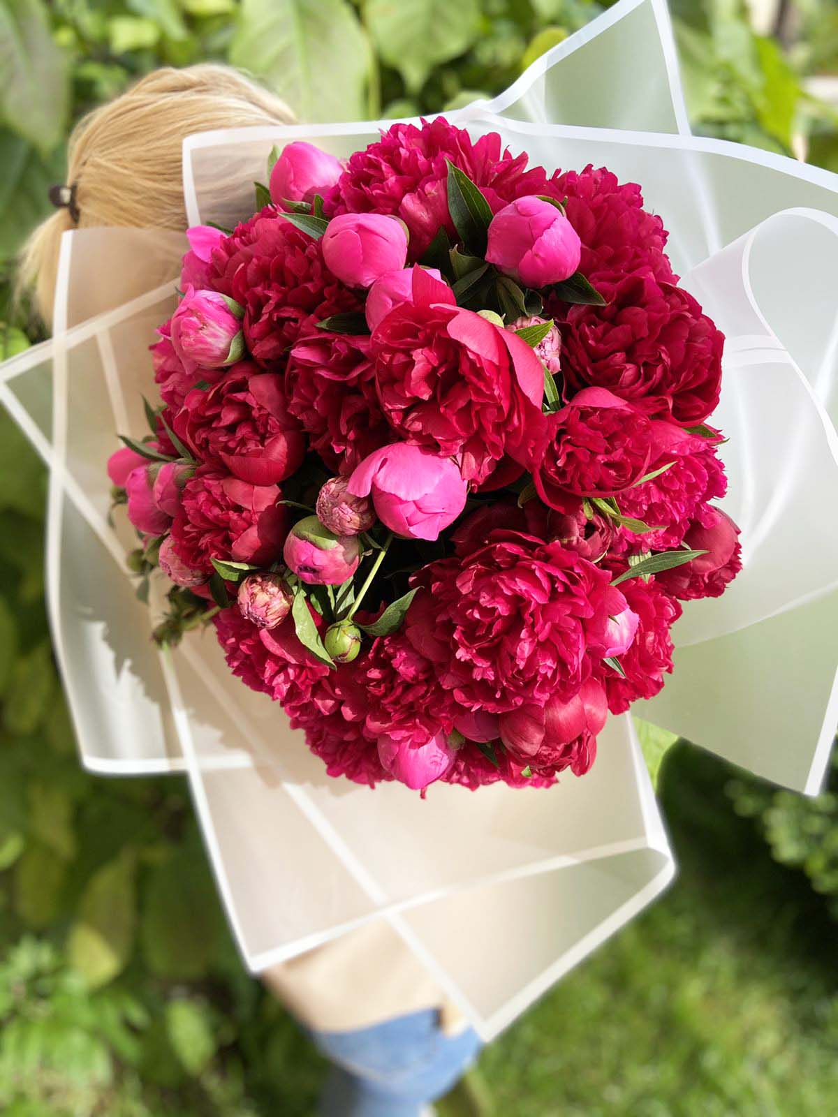 Our photo shows 15 peonies of a different colors bouquet, but you could choose another number of them for your arrangement. Needelss to say, that bouquet will be packed for an impressive presentation to the receiver.