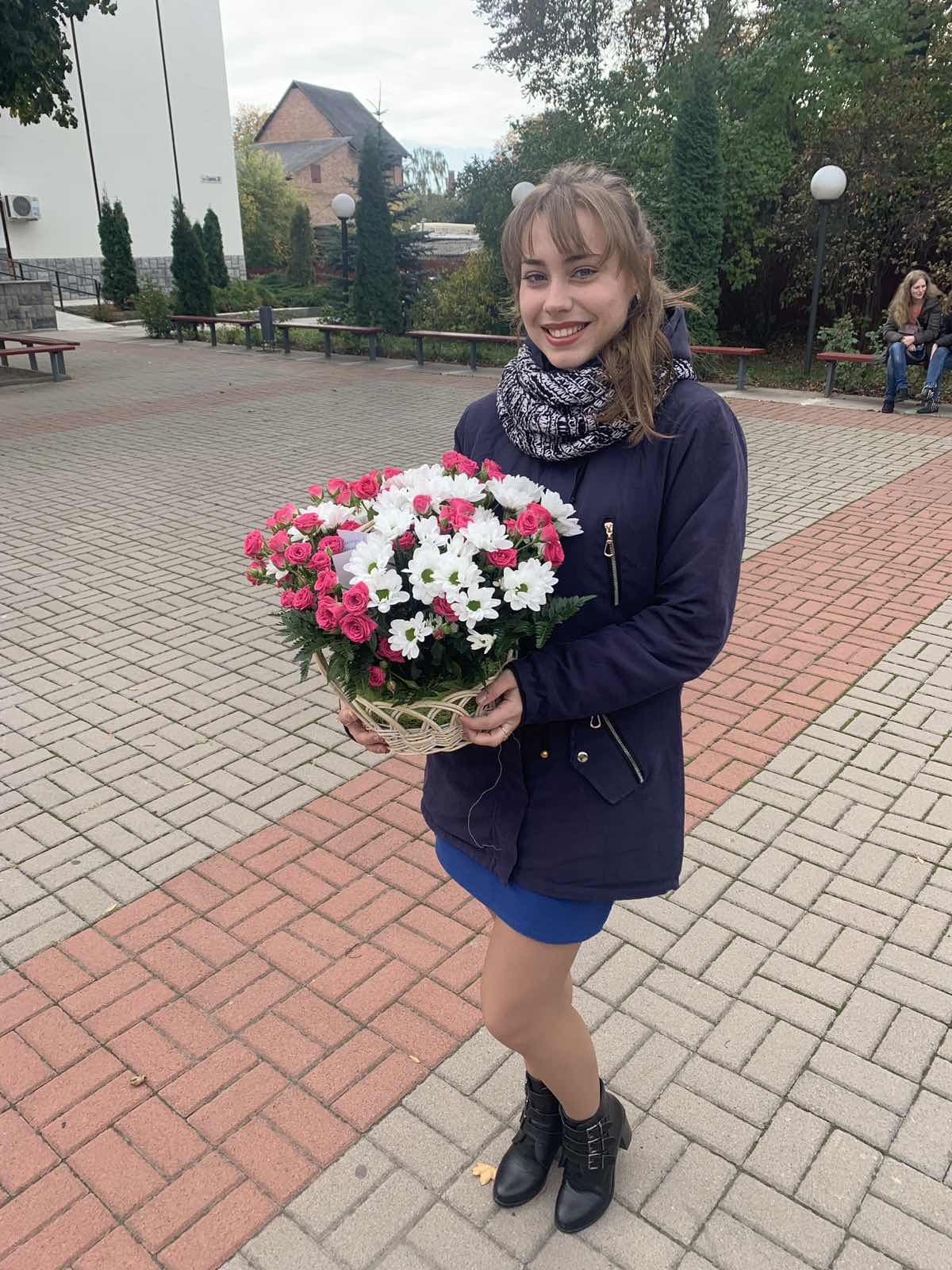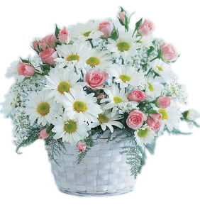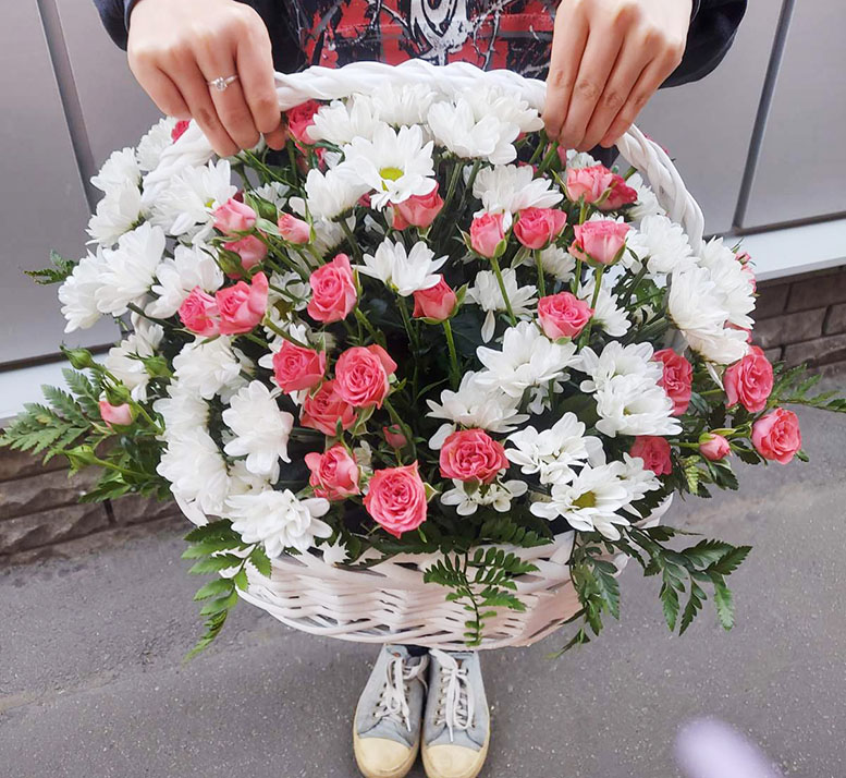 And here comes silence while you are watching florists making this miracle of white chrysanthemums and pink roses. Or it might be, a creative expression of a lonely heart?
