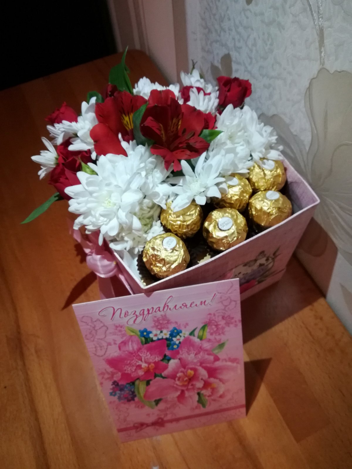 The color of the box can differ than the one at our photo. We'll pick the most convenient for this arrangement!
