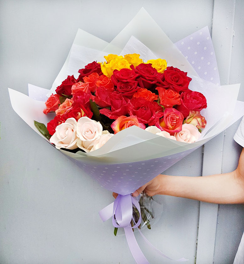 Please, choose the amount of the roses but there will be 4-5 colors anyway. You can change the amount of the roses in the bouquet