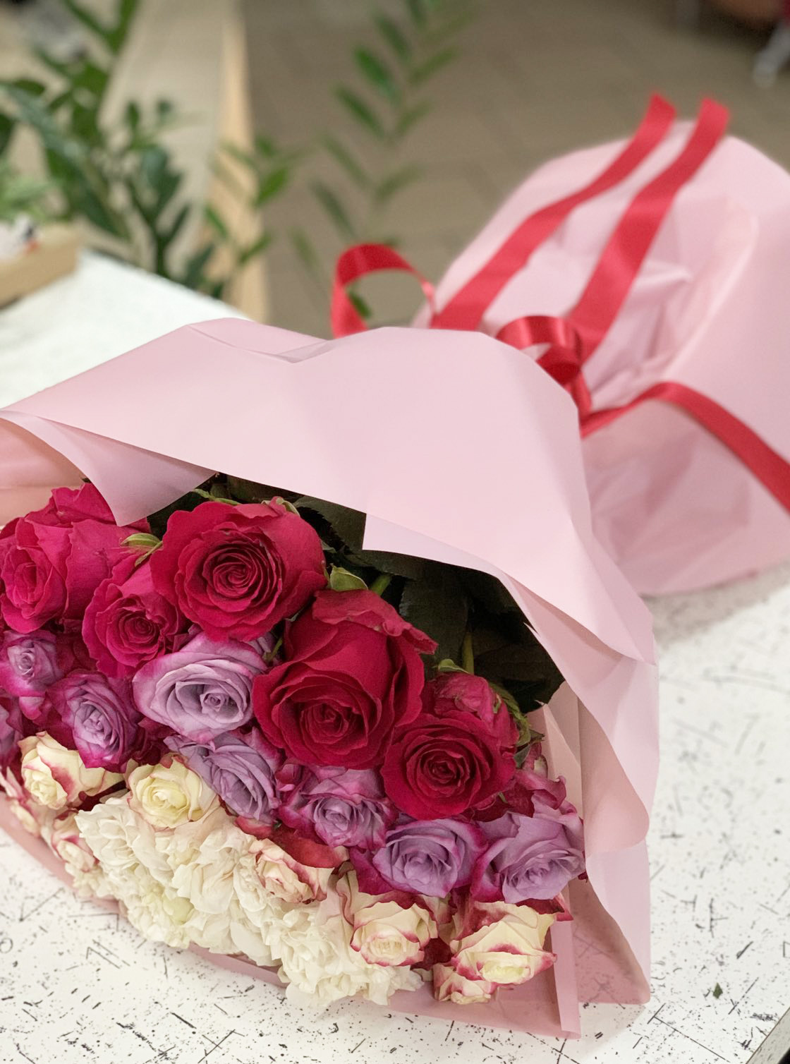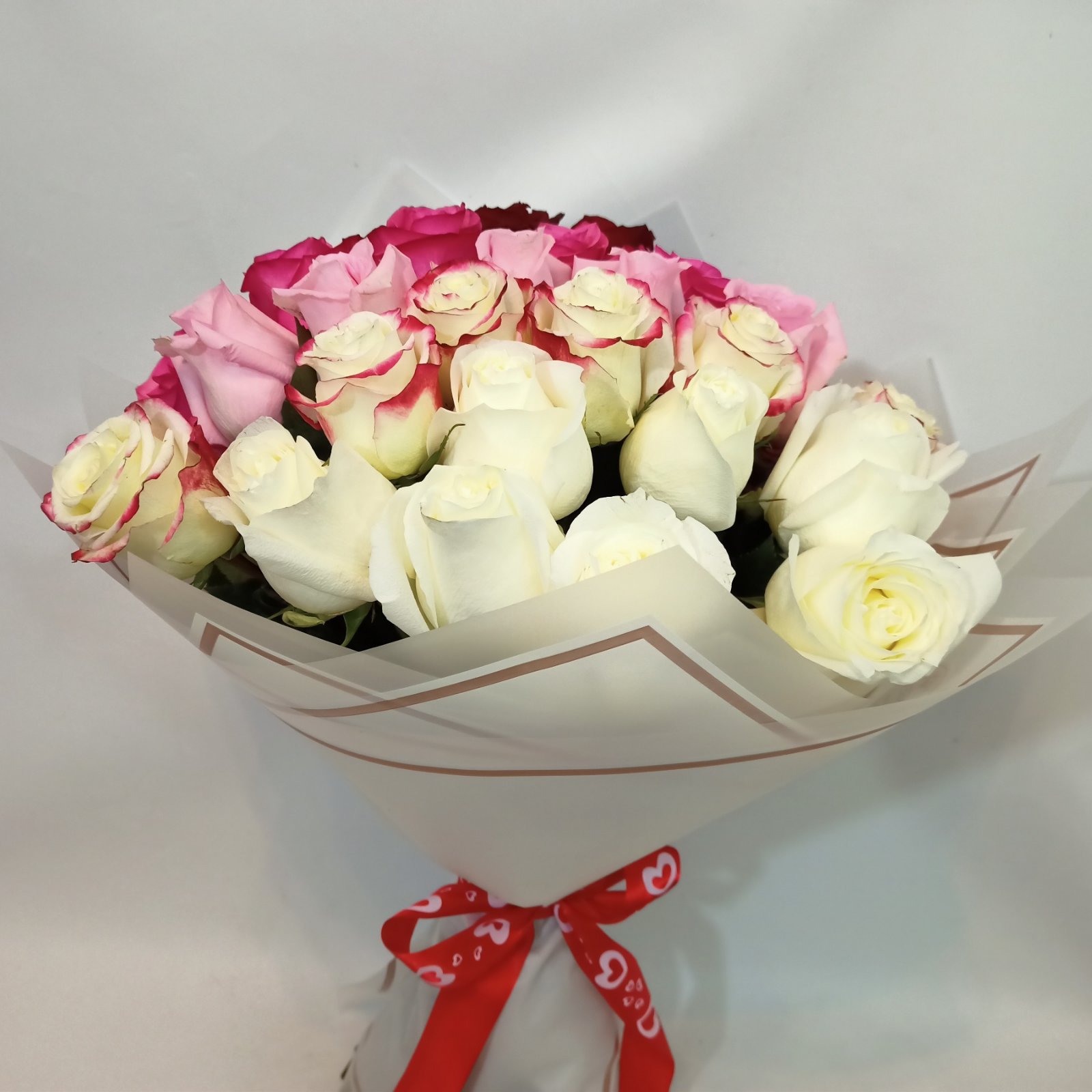 This bouquet looks perfect with short or medium roses length about 50-60cm.