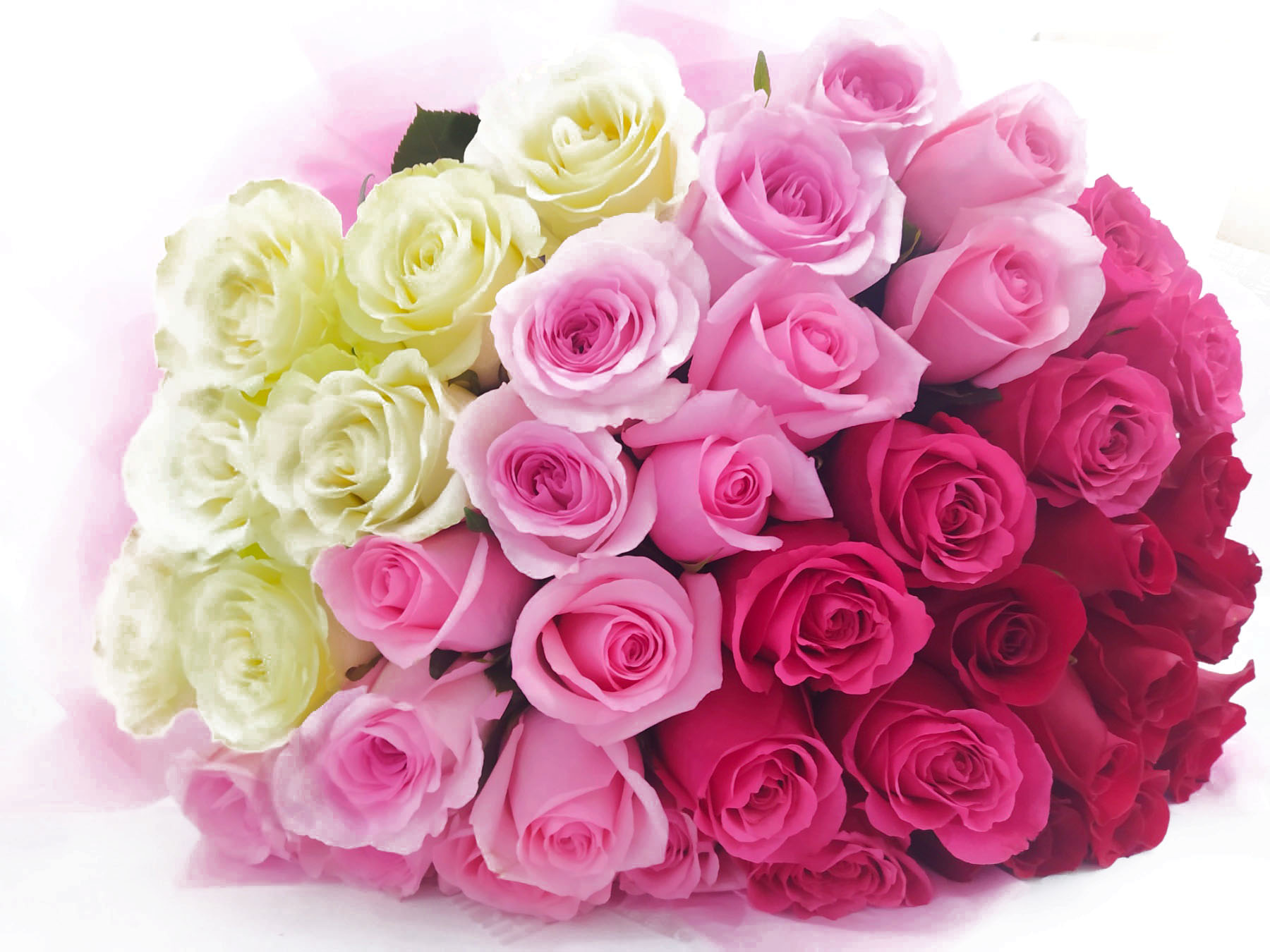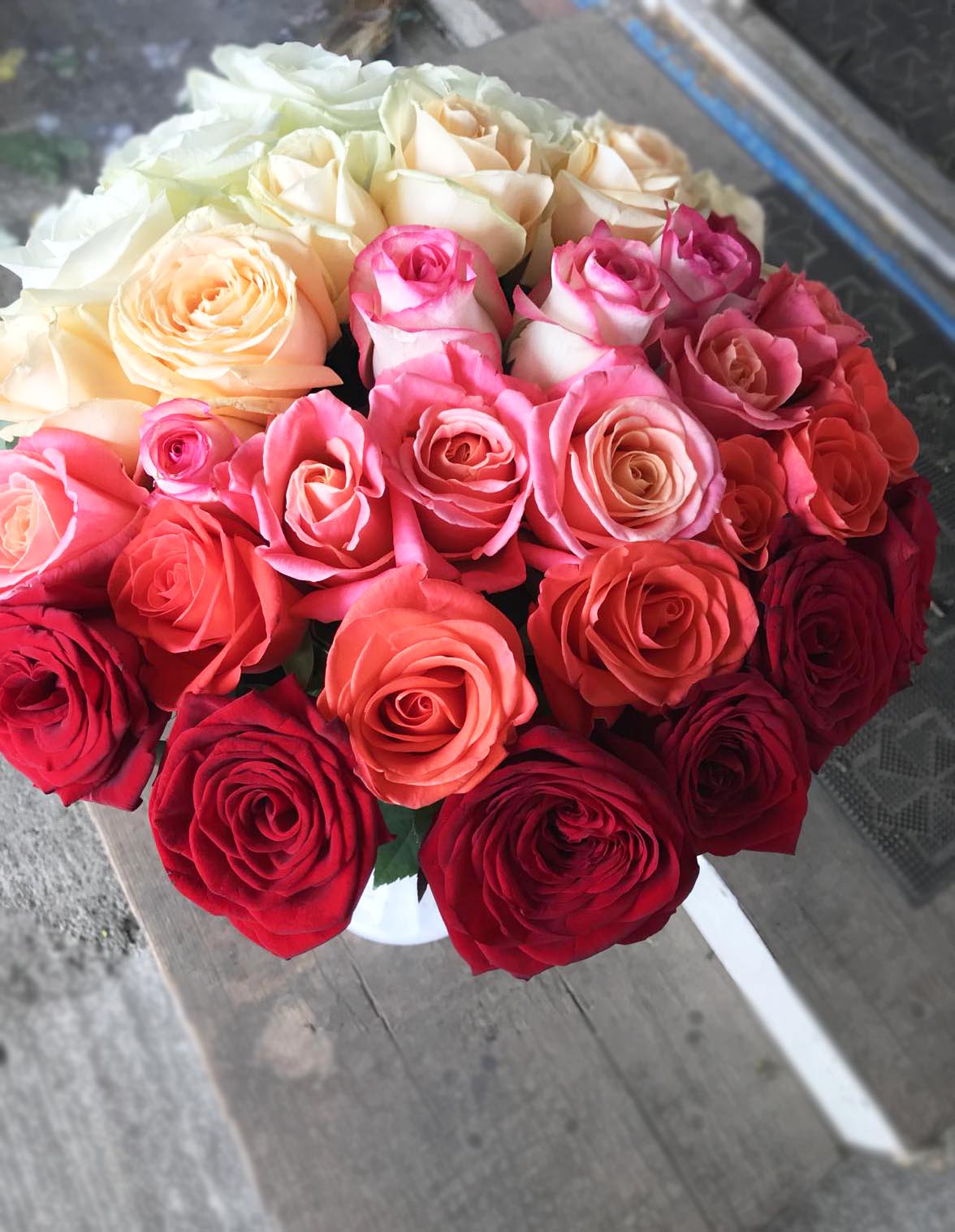 Smooth color transition from white - yellow - coral - pink - red - deep red roses!