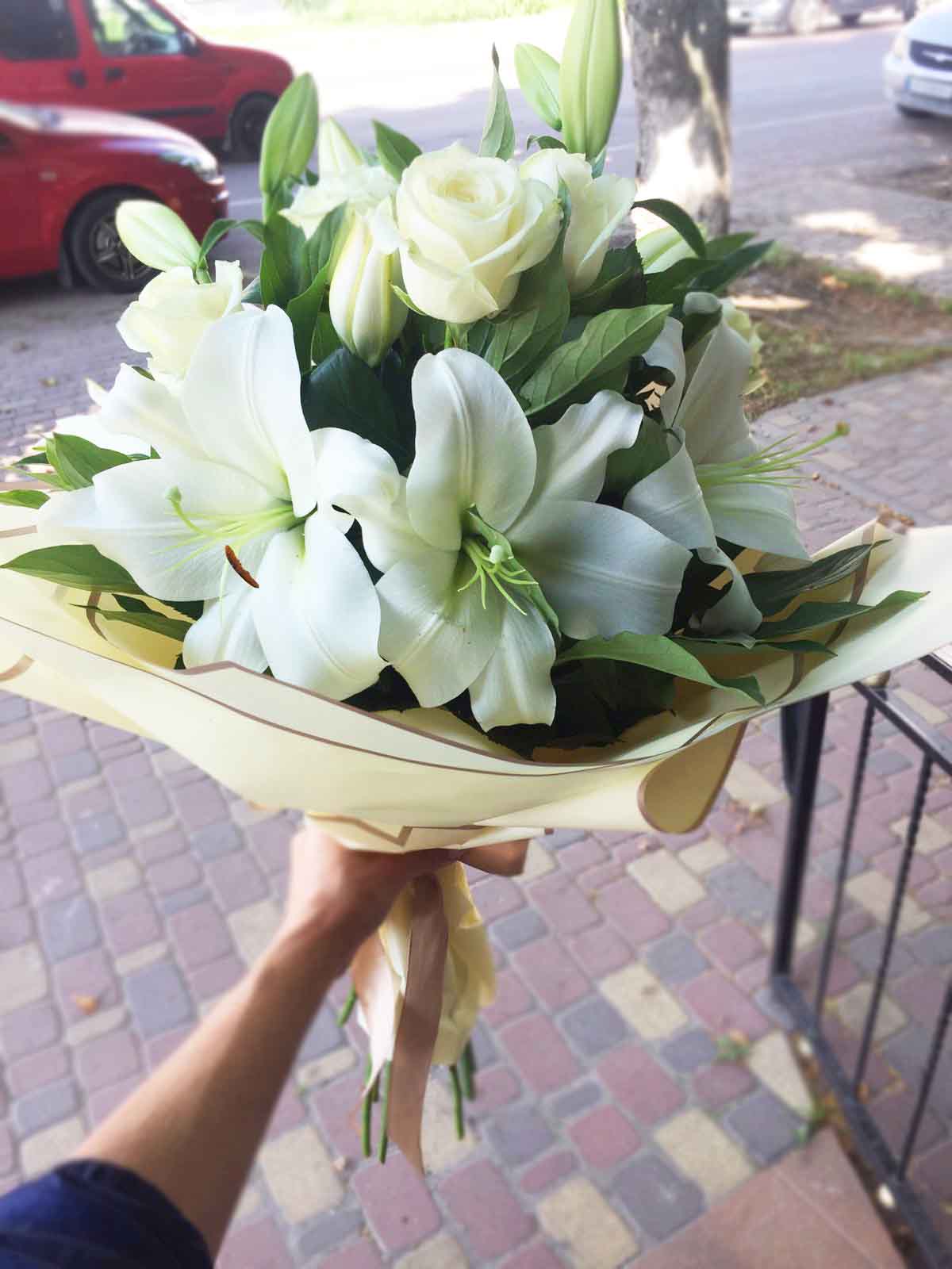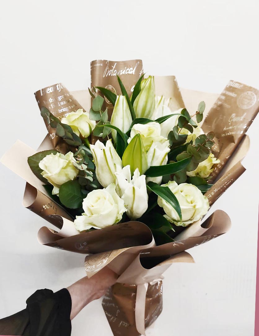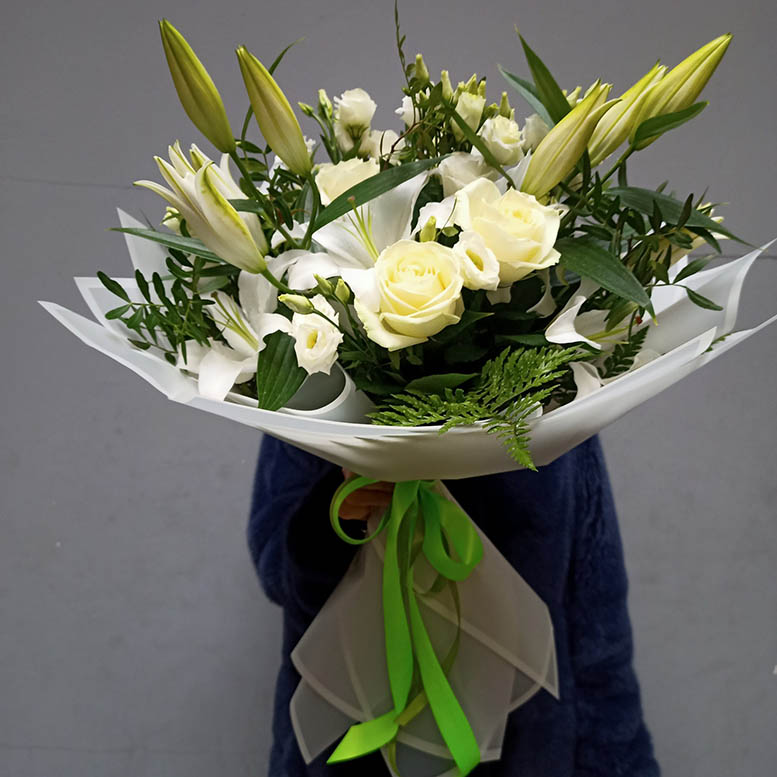 A bouquet can be arranged either Small or Medium or Large size. Liliums have 1-2-3 open flower buds and 3-4 are still "closed" and they will open gradually one by one to bring joy, happiness…and memories for quite a long time after delivery.
