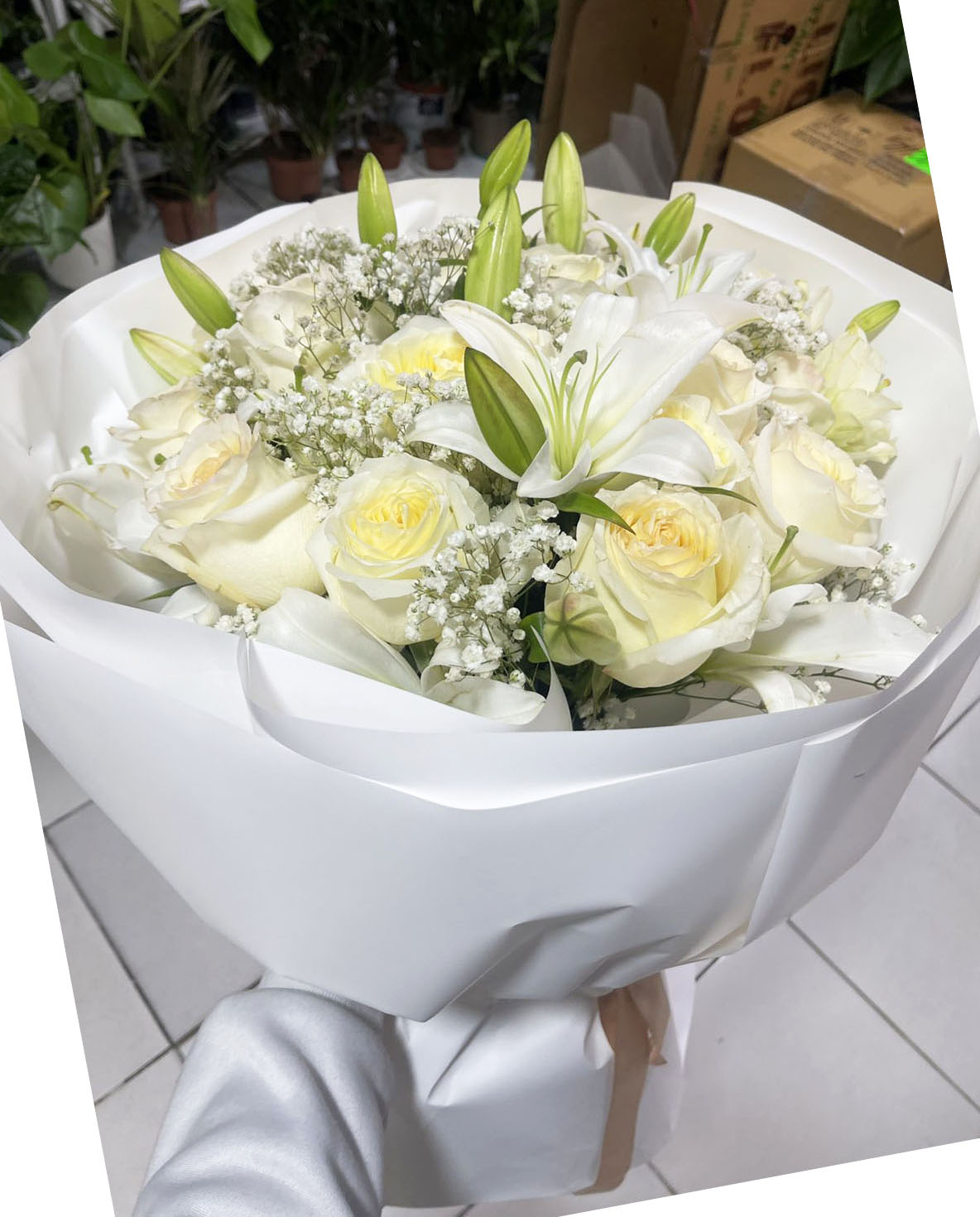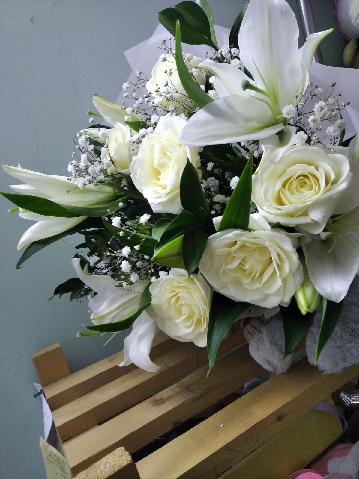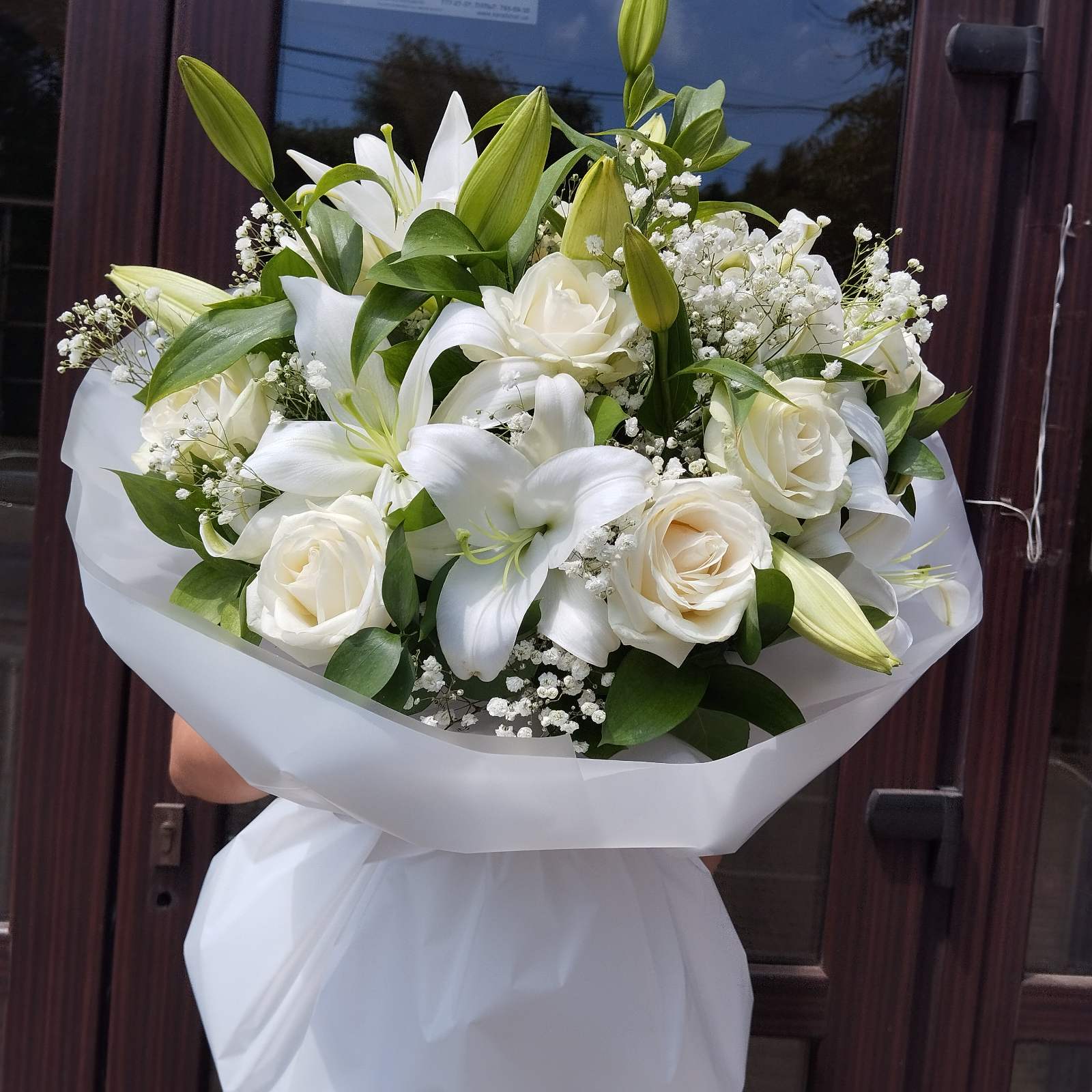 15 x snow-white Roses 3 bunches of Lilies