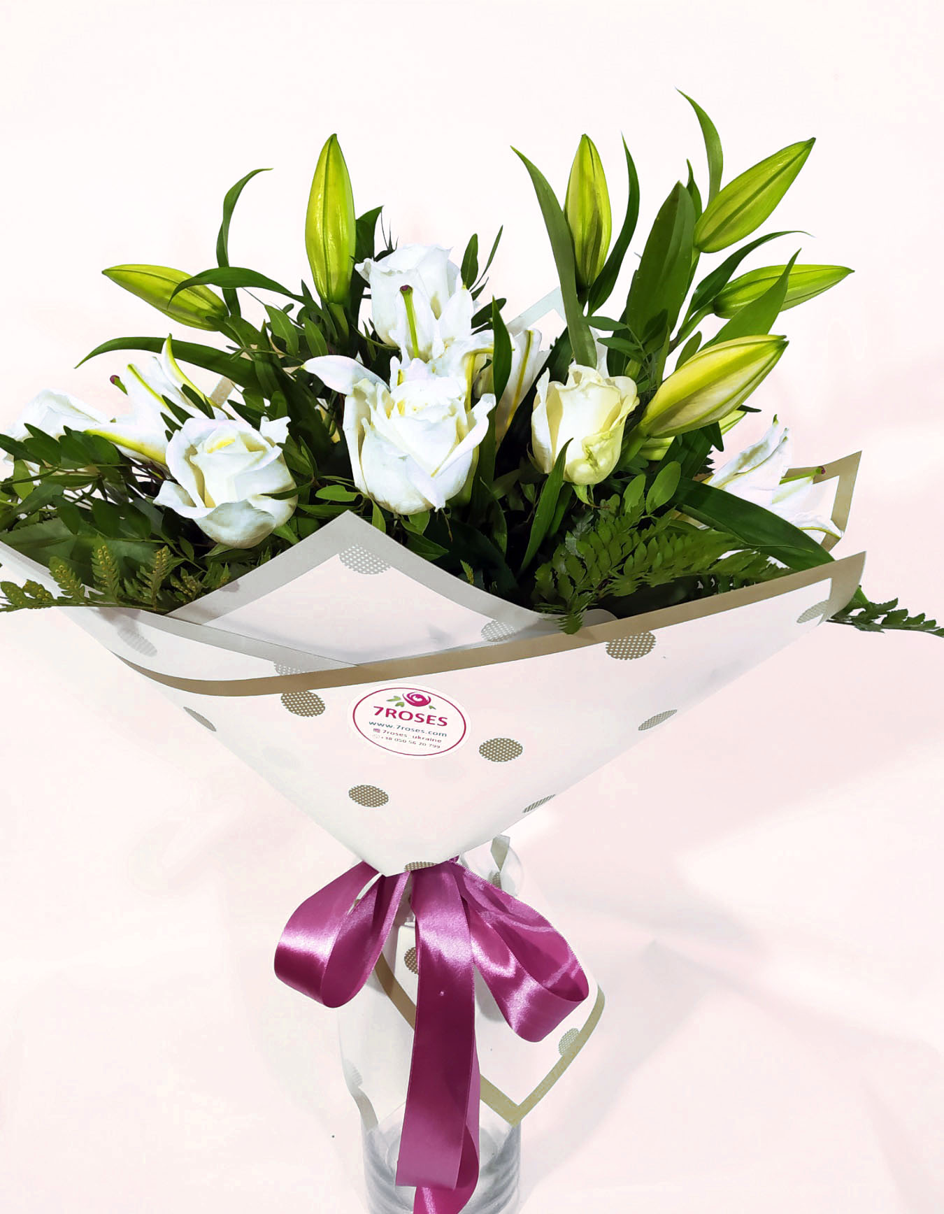 7 x snow-white Roses 2 bunches of Lilies