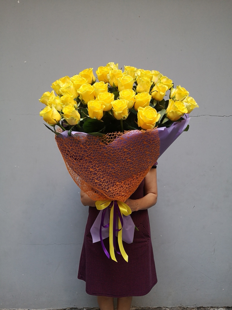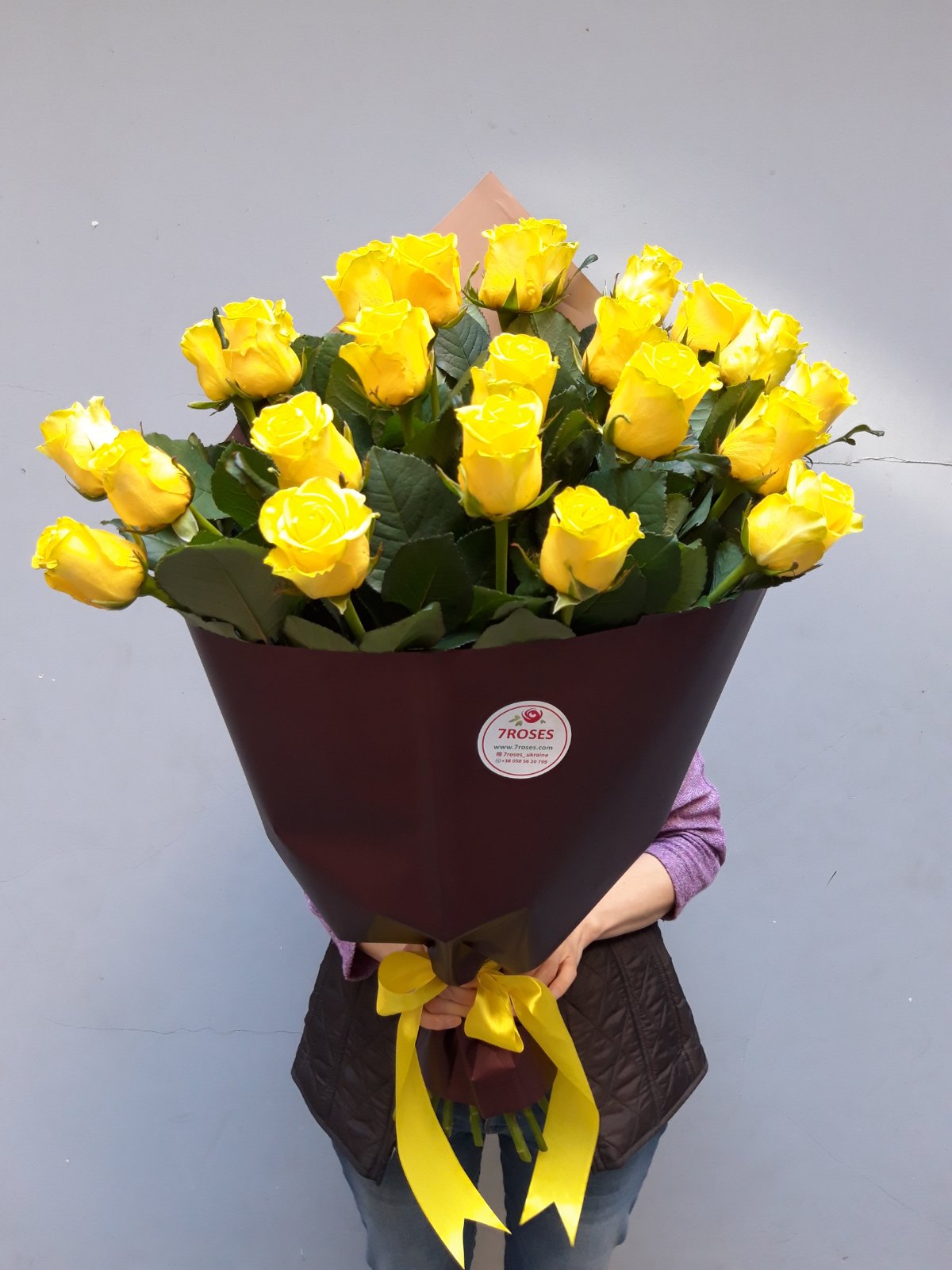 ATTENTION, please!! Yellow color roses are quite rare in Ukraine and there is no guarantee we have them available at the moment of placing order. So, we'd appreciate if you inform us about your "choice #2" and "choice #3" color so that we could substitute yellow roses with another color.