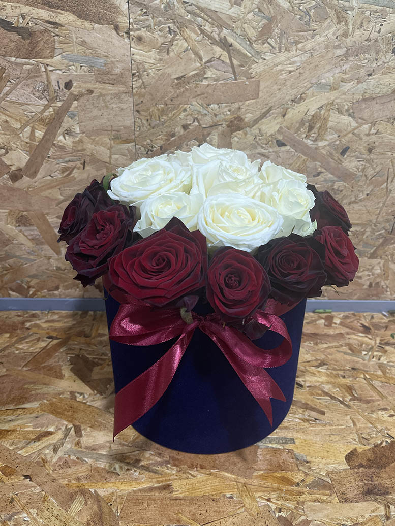 The color of the box can be different of the shown at our photo, but we'll select the most suitable of those that are available at our flower shop at the moment.