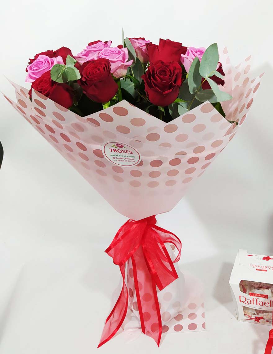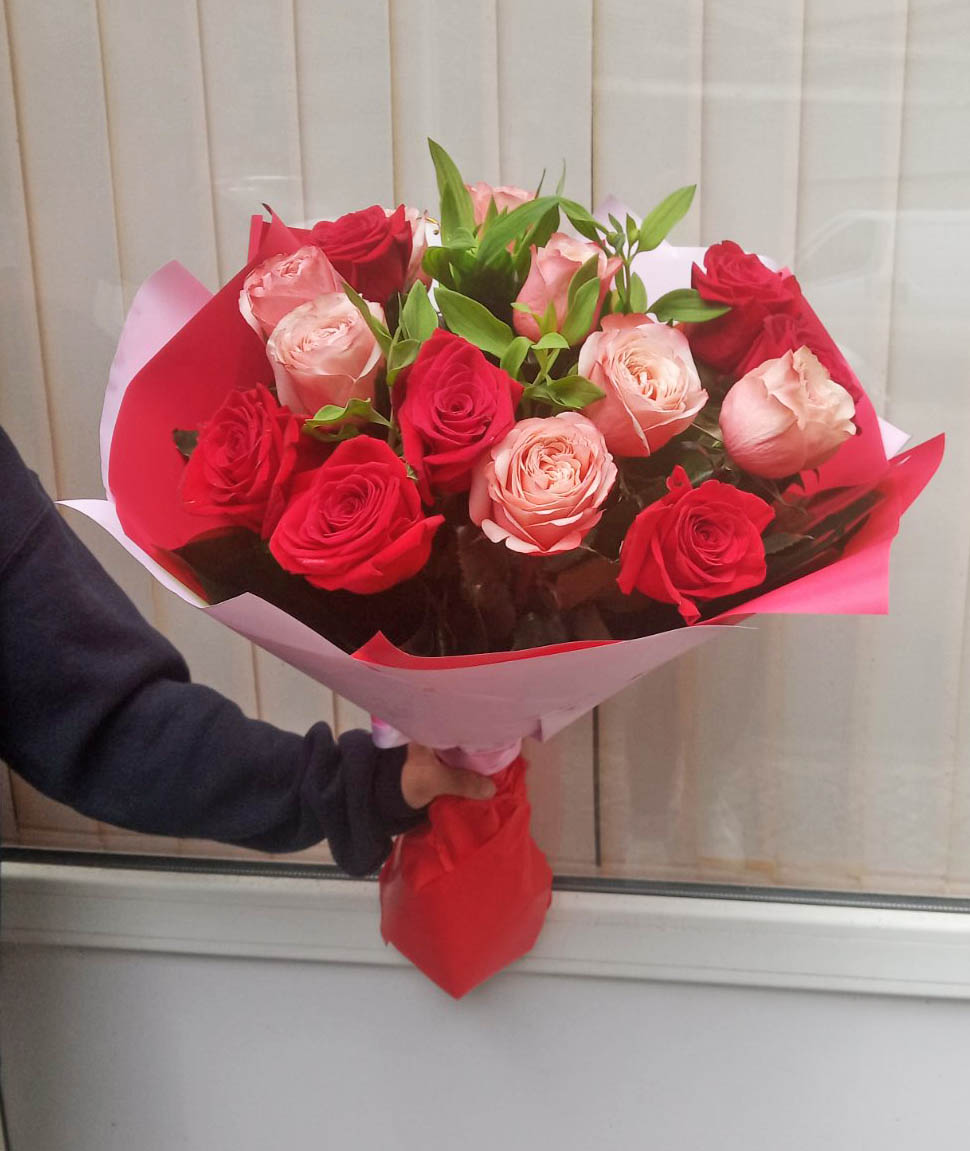 Our photo shows 51 Red & Pink Classic roses bouquet, but you might choose any other number.