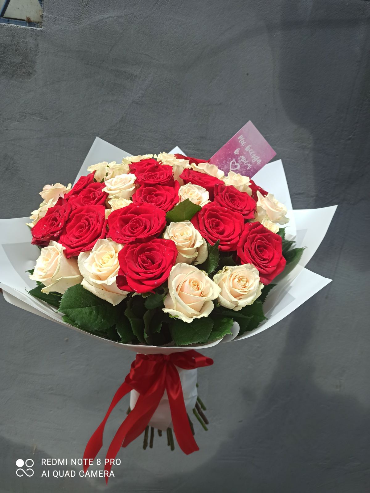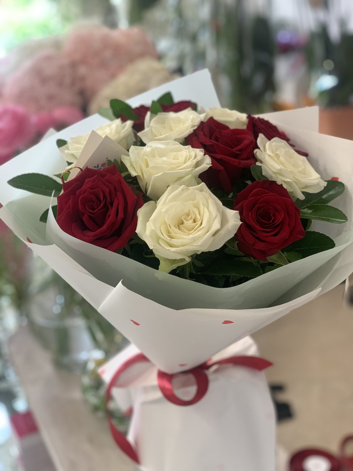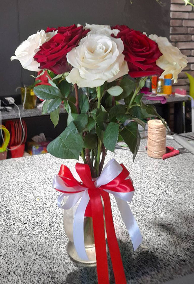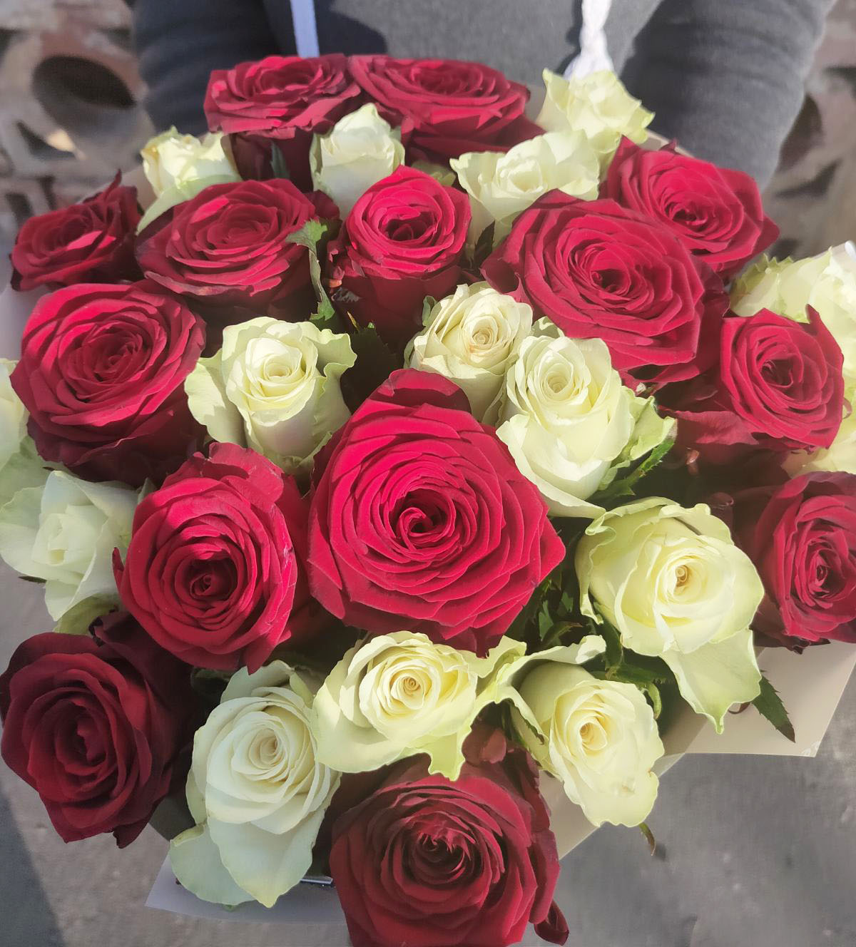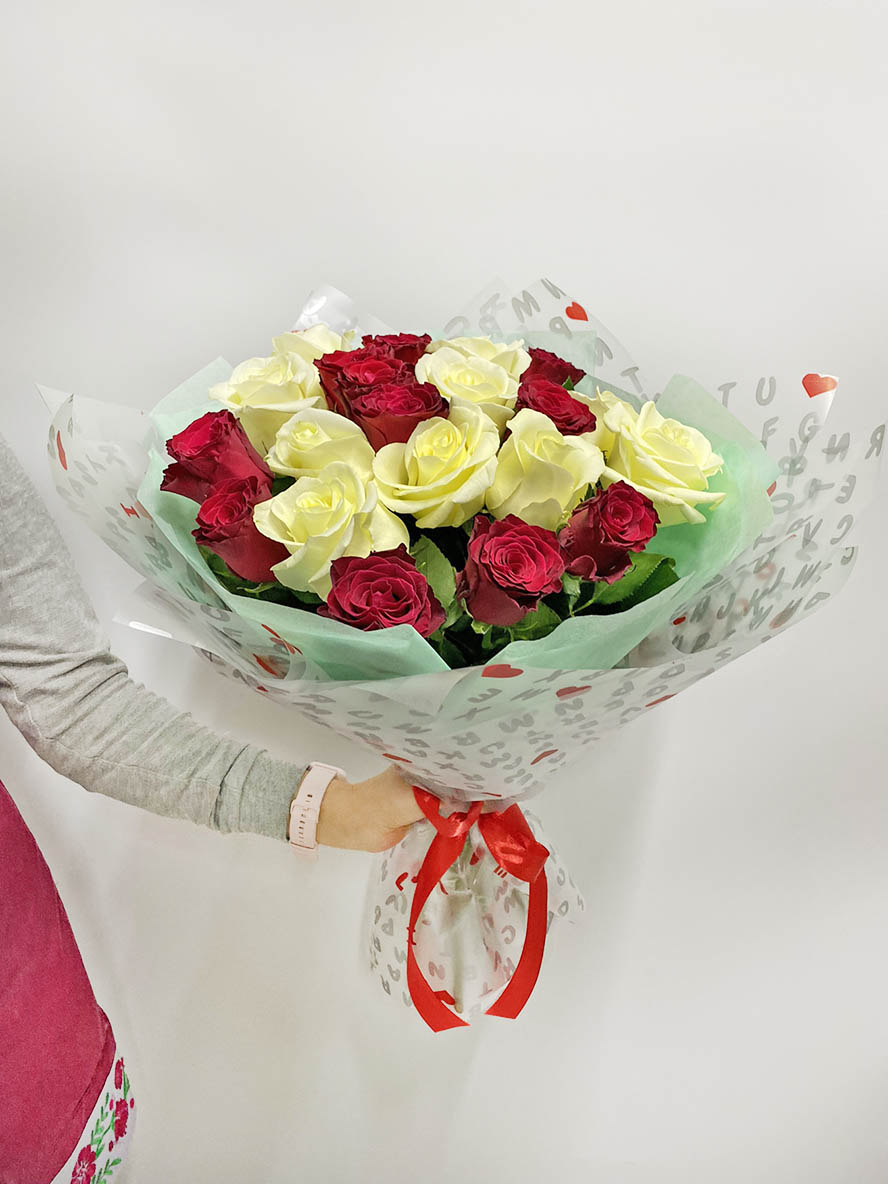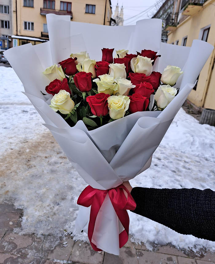 Nicely designed bouquet of mixed equally Red and White Classic roses.