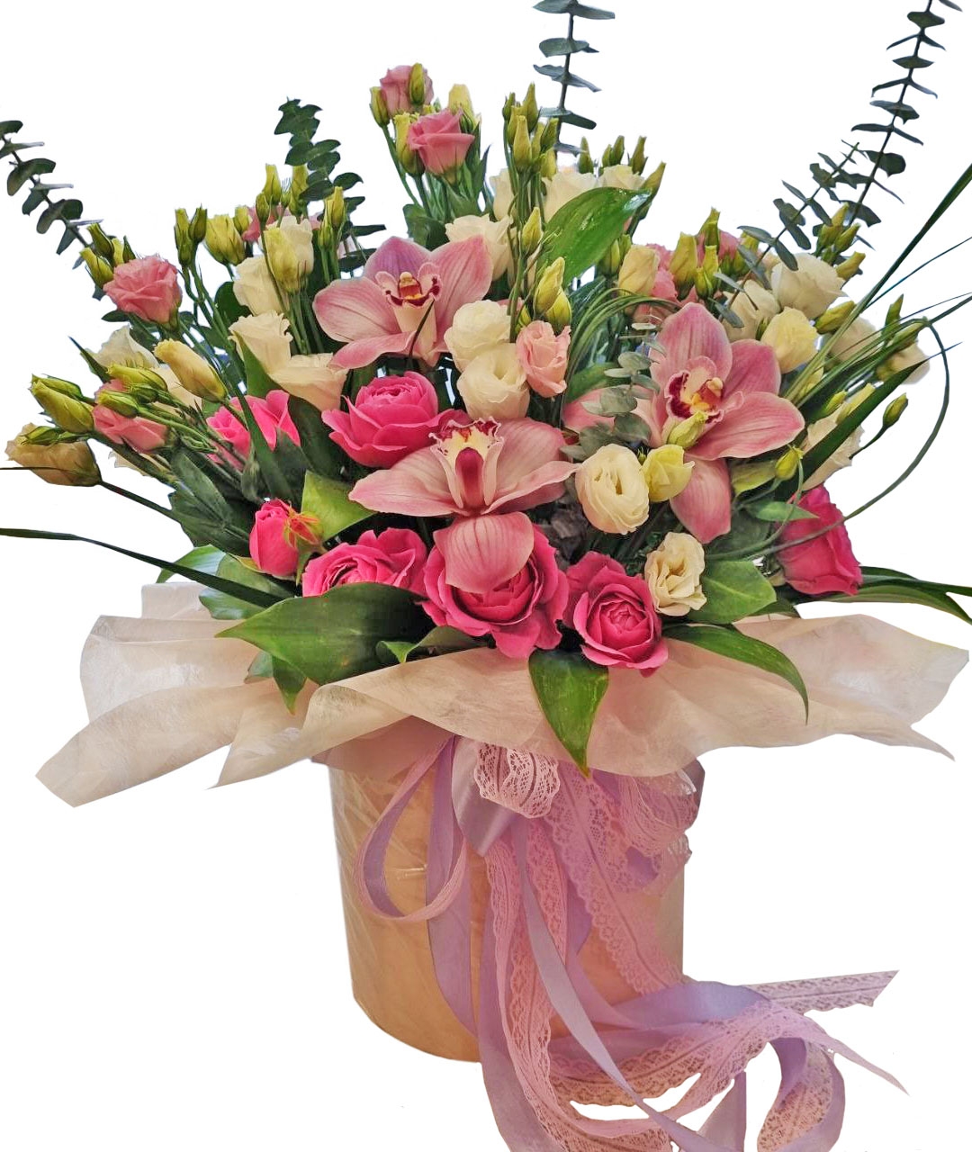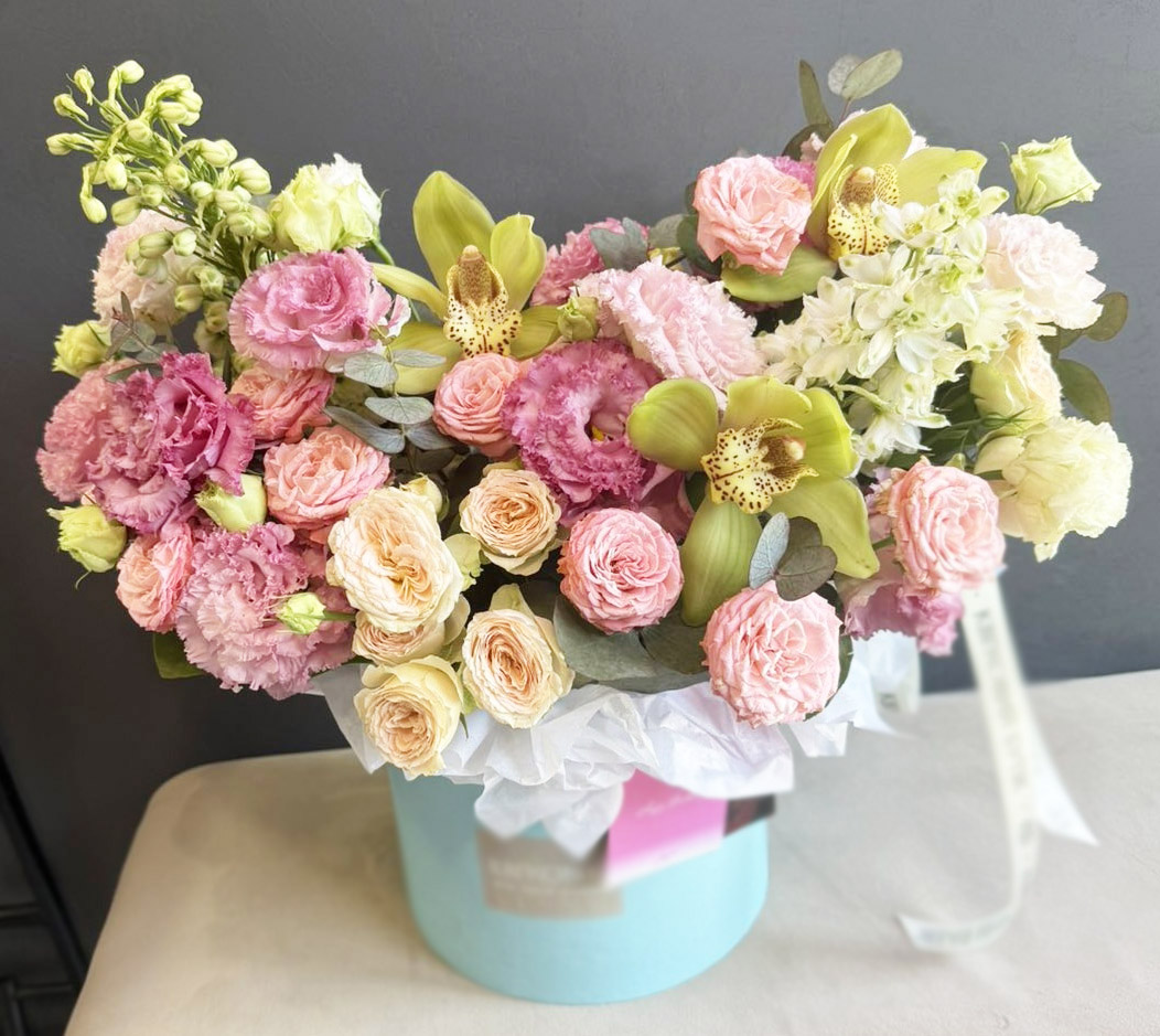 Delightful and tender flower arrangement at a Hat Box.