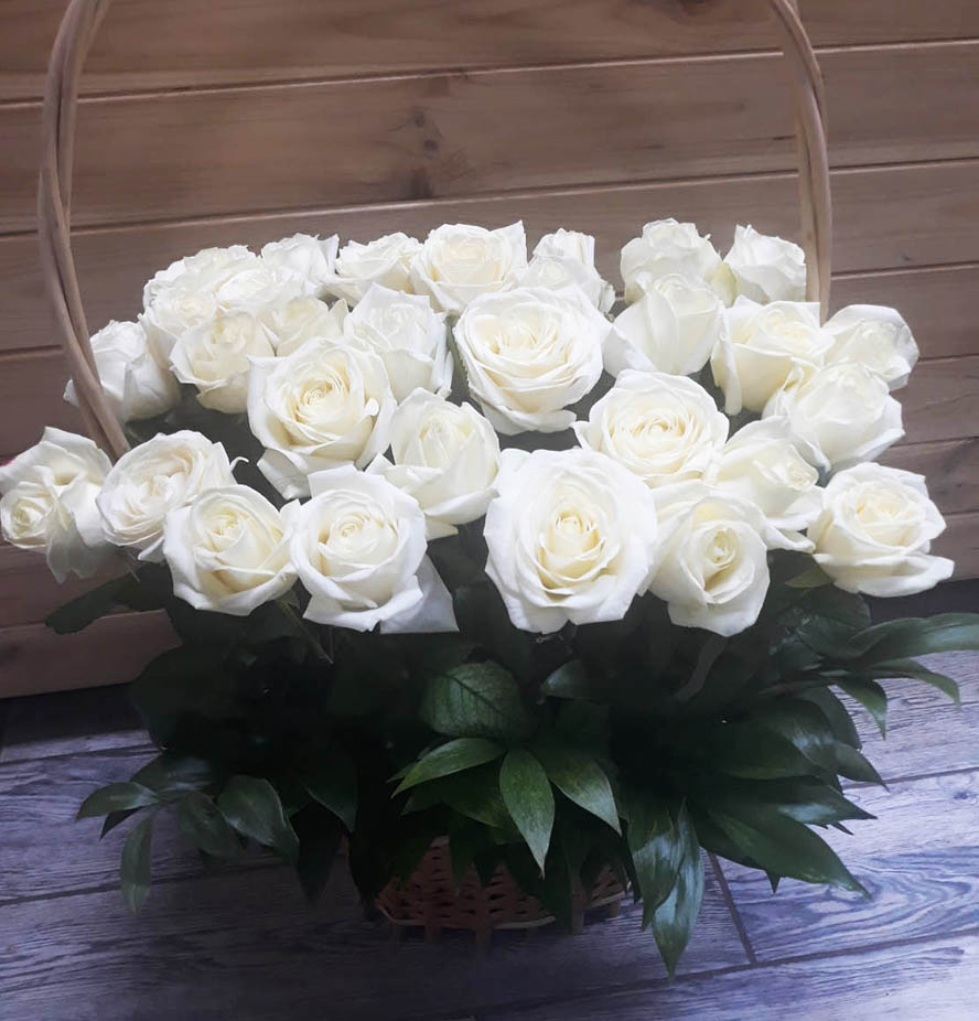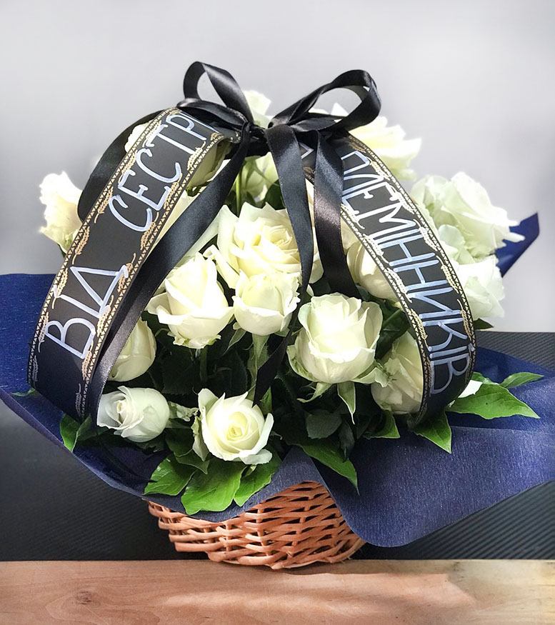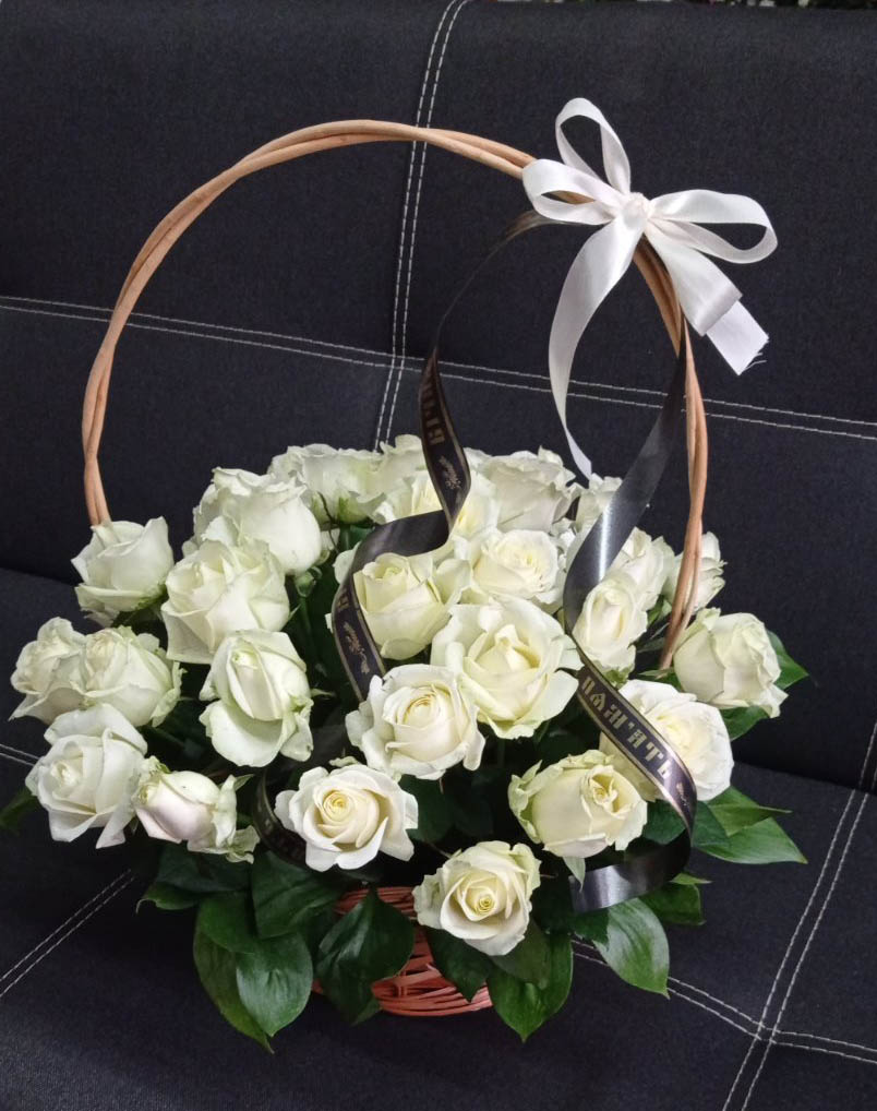 White color is a symbol of a long memory about the passed away person. So, the basket with even numbers of flowers is for memorial events only.