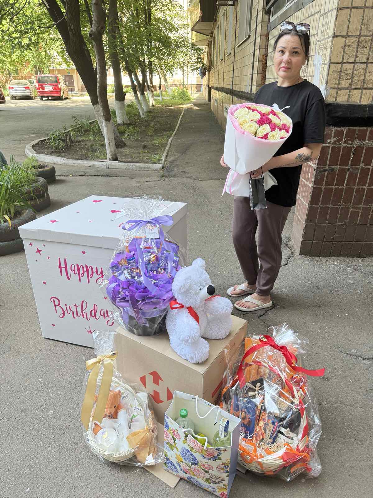 Как идея: если такая коробка отправляется на день рождения, можно добавить большие летающие цифры. Пожалуйста, заказывайте их отдельно, они есть ниже в наших предложениях.