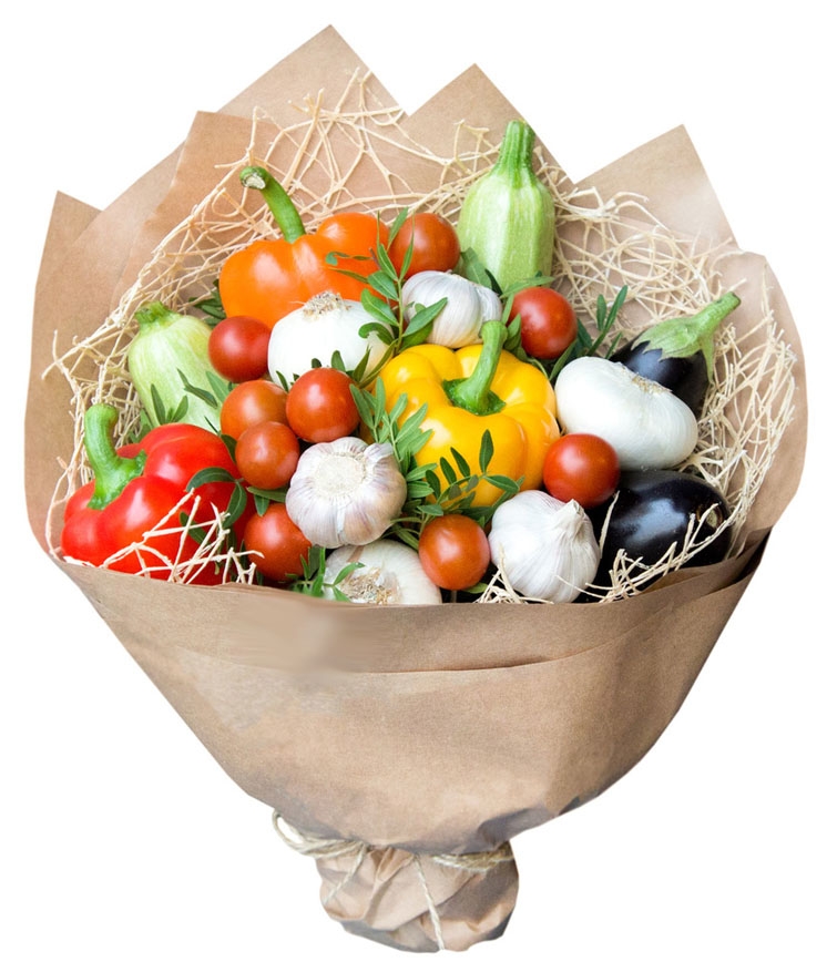 Чем больше овощной букет, тем больше здоровья добавит он получателю, а также удовольствия от созерцания этой яркой картинки даров природы!