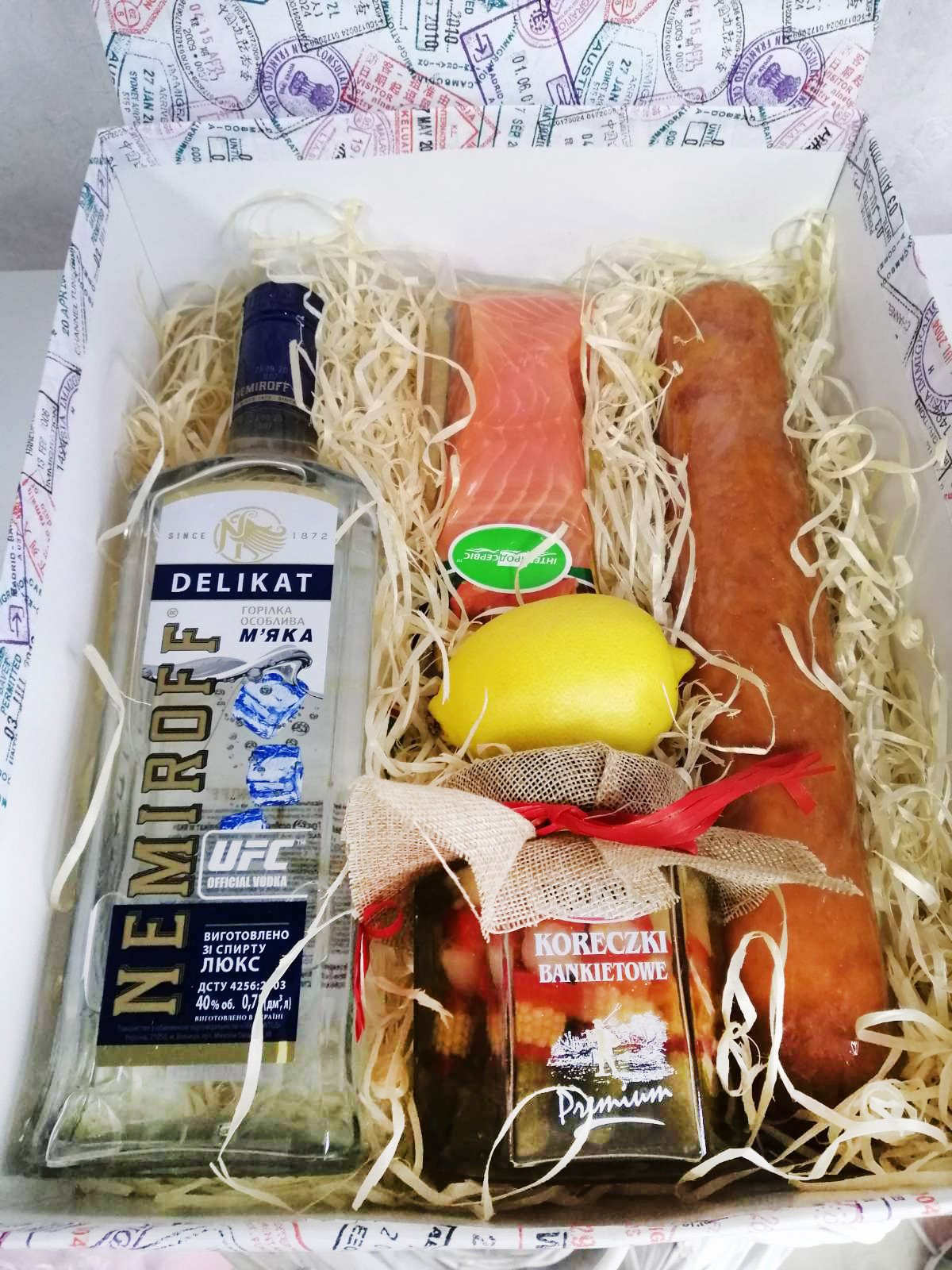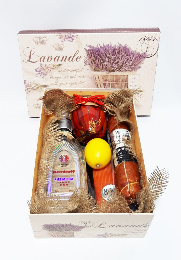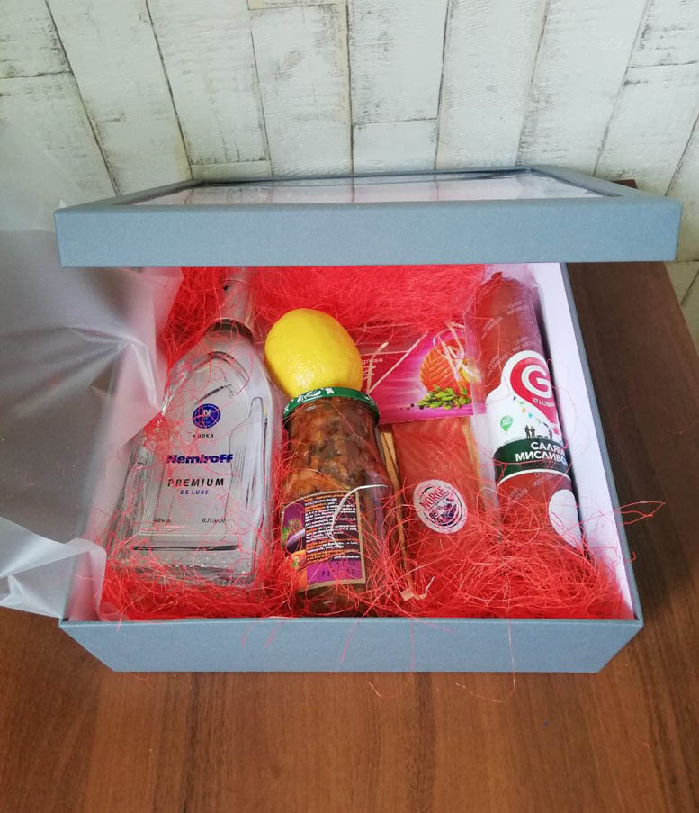 Набор №4 для настоящих мужчин из серии "Казак" уже серьезнее. Здесь тоже хорошая водка, но закусить содержимым можно уже более плотно.