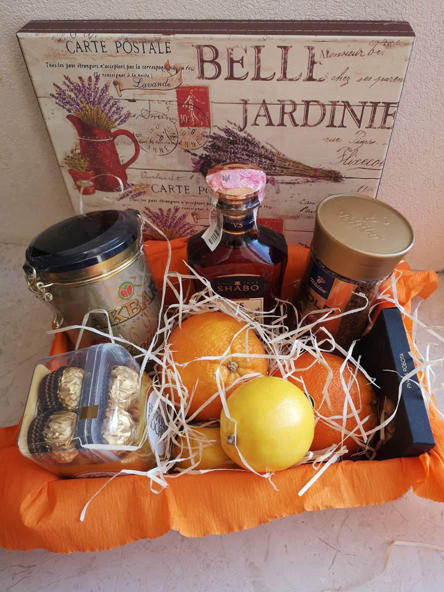 В Н И М А Н И Е : Мы - цветочный магазин и создание прекрасных букетов цветов, их вручение получателям - наша главная функция. Все другие вещи мы покупаем в наших местных магазинах как обычные покупатели. Так что, пожалуйста, заказывайте этот подарок за 1-2 дня до даты вручения. Нам требуется время для подготовки такого набора...