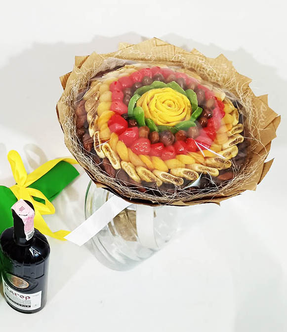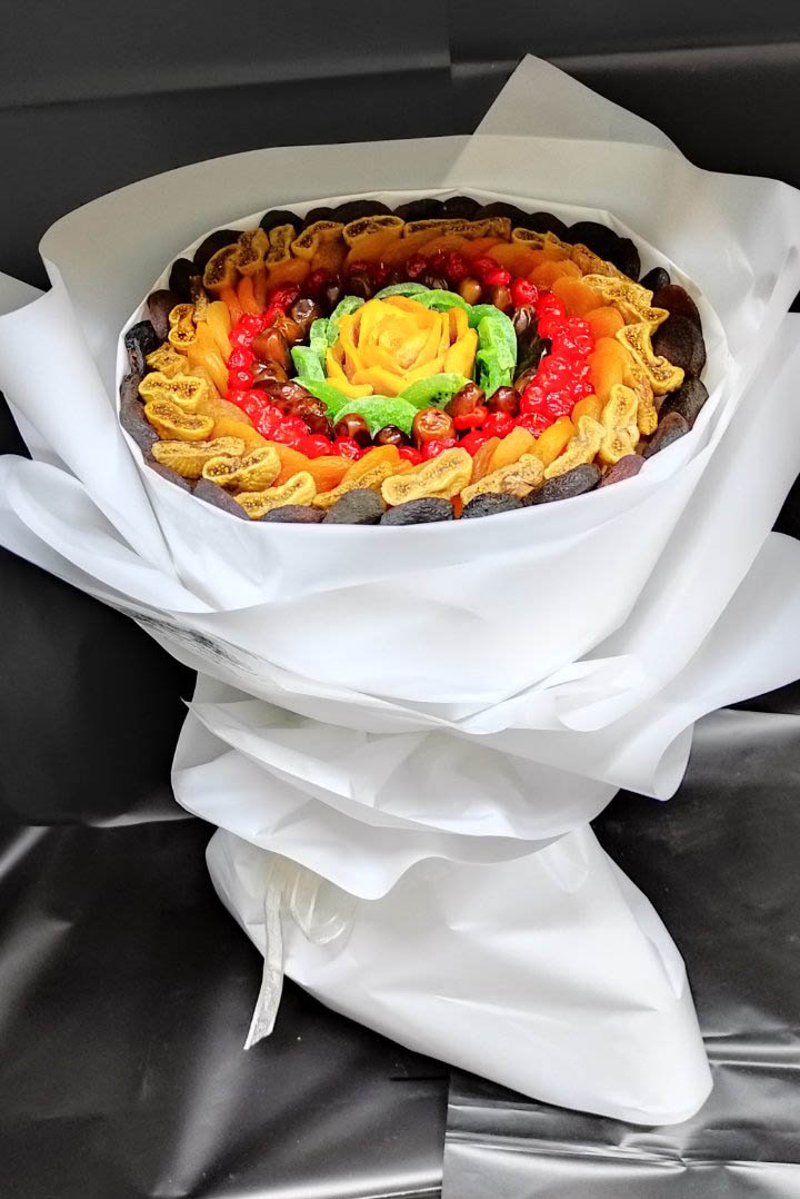 Cухофрукты - невероятно полезный и в то же время вкусный натуральный продукт. А подарок в виде красиво составленного букета доставит еще и эстетическое удовольствие получателю.