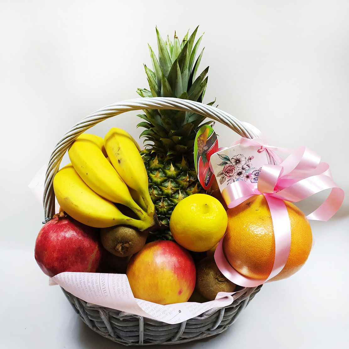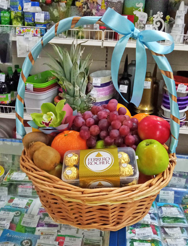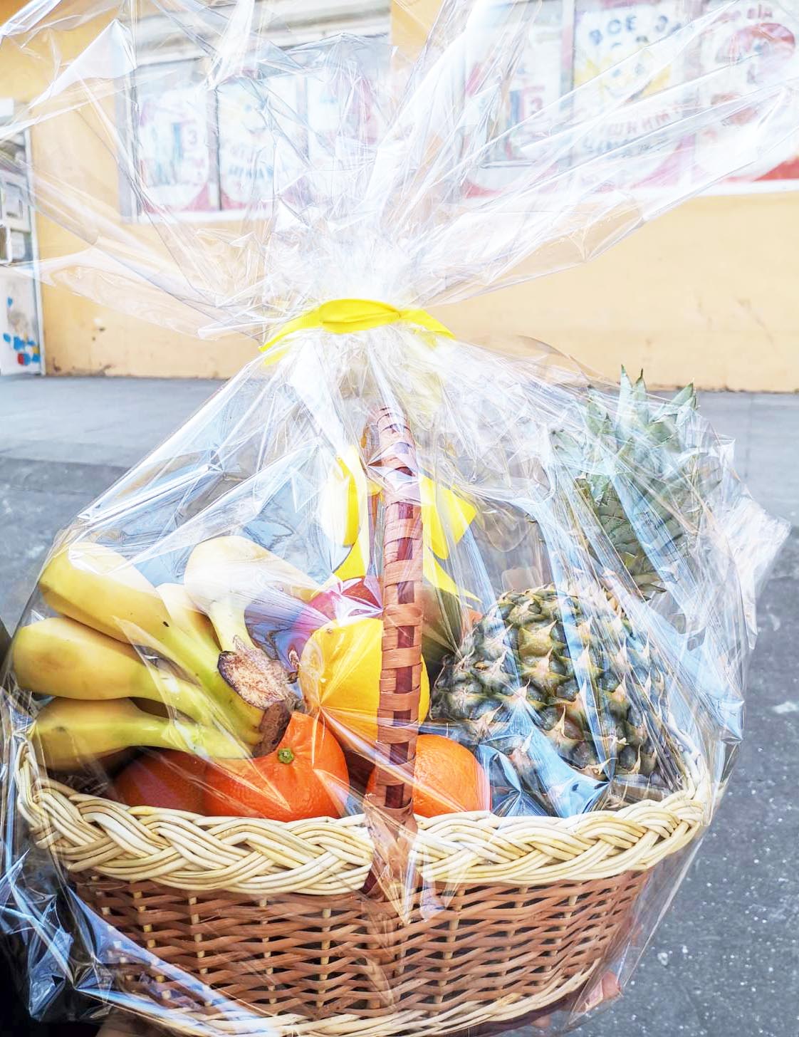 Корзина с фруктами и цитрусовыми.