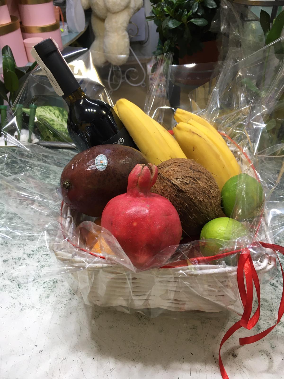 Каждая композиция составляется в нашем цветочном магазине и для нее мы выбираем необходимые материалы из того набора, что есть у нас на данный момент (корзину, контейнер, коробку, ленты и т.п.). А это значит, что конечная композиция может отличаться от той, что вы видите на нашем фото (форма корзины, цвет коробки и т.д.). Хотя мы, конечно, постараемся найти максимально похожие. Фото подарка, предлагаемого здесь и фактически доставленного по предыдущим заказам других наших клиентов, можно увидеть ниже на этой странице.