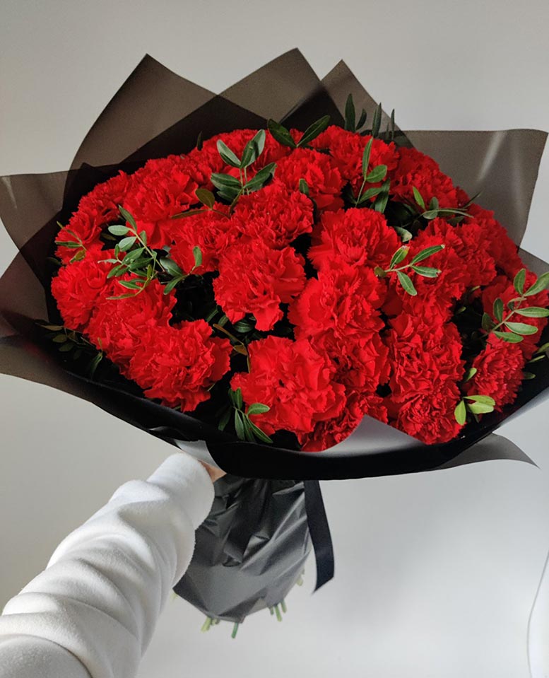 В букете на фото 44 гвоздики, но вы можете заказать любое другое количество, выбрав его из списка.