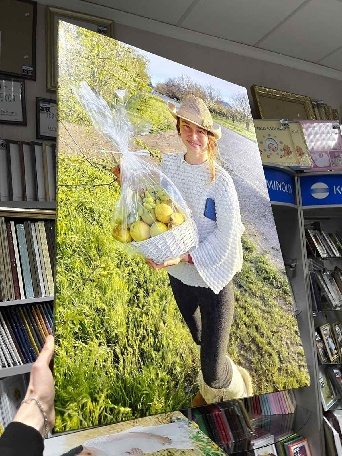 Мы напечатаем это фото маслом на холсте. Картину можно повесить в доме, квартире и она останется на долгую, практически вечную память о счастливых днях и... дарителе этого необычного и приятного подарка.