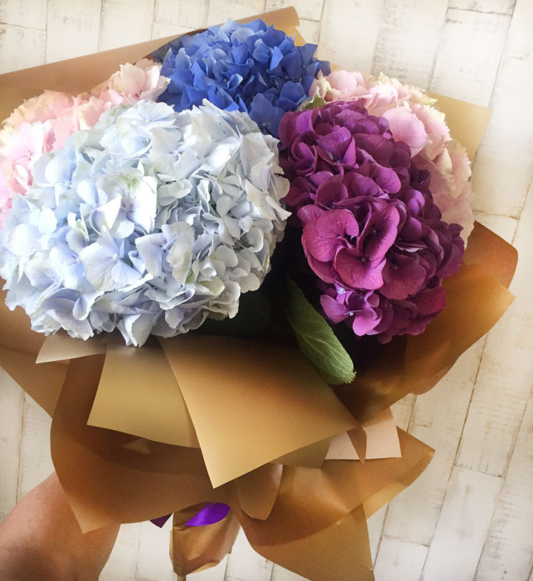 ВНИМАНИЕ: Сезон цветения гортензии - с июля по ноябрь. Только в эти месяцы такой букет может быть доставлен.