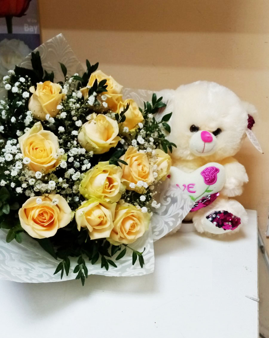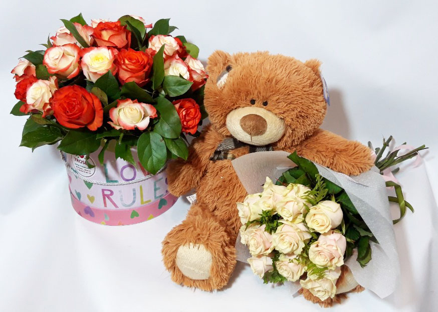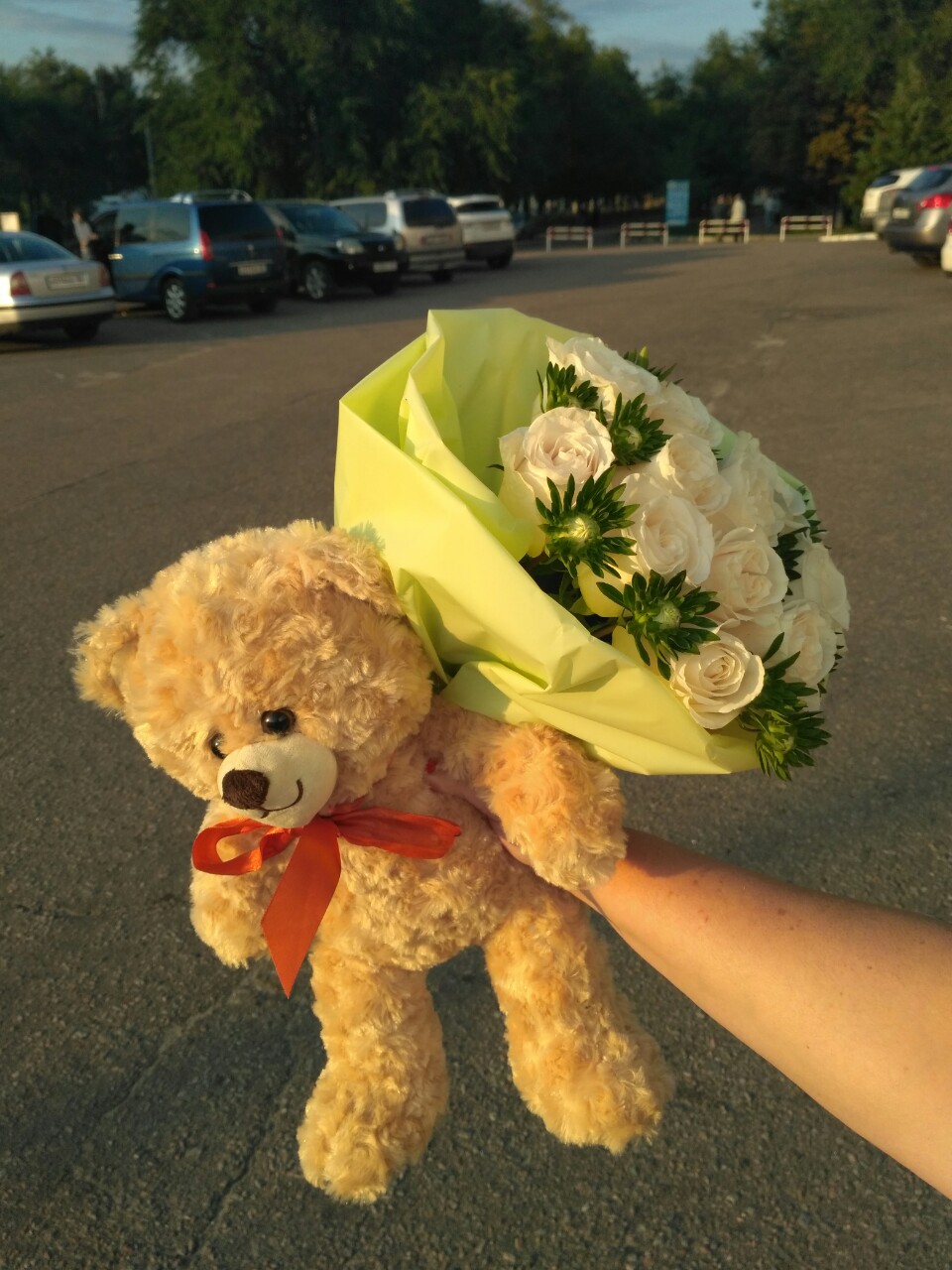Фото наших получателей цветов и подарков - Симпатичный курьер с розами