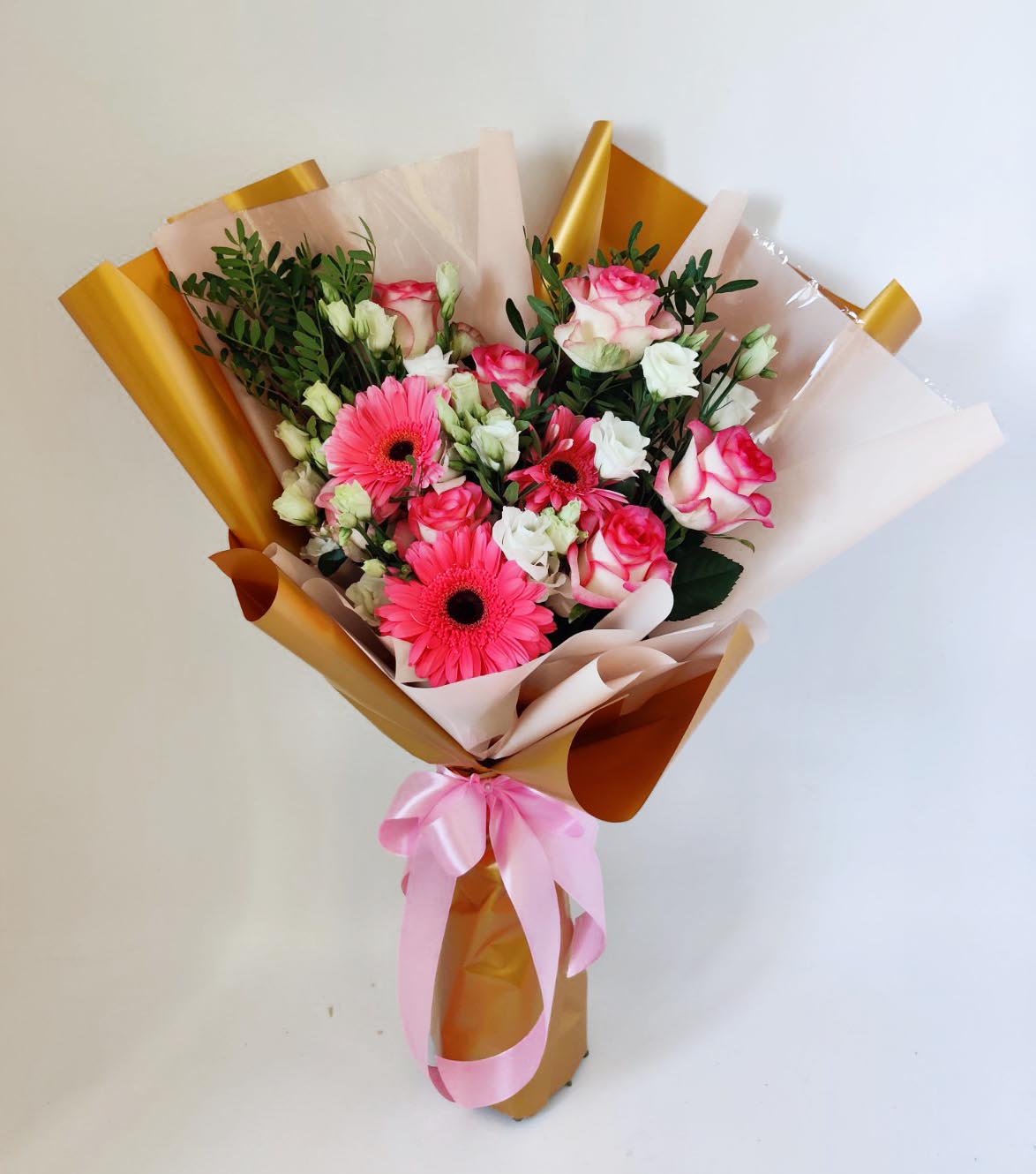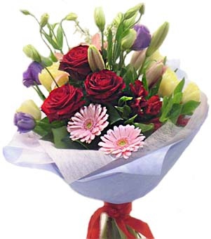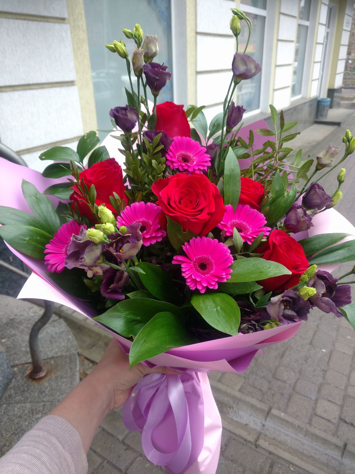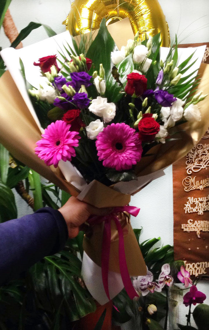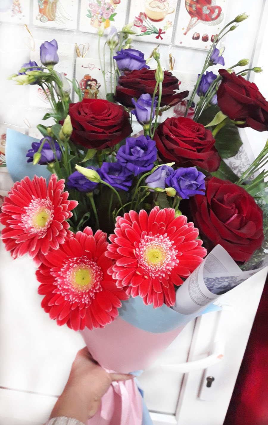 3 x Красные розы 3 x Белые розы 3 x Герберы 3 x Эустомы 3 x Альстромерии