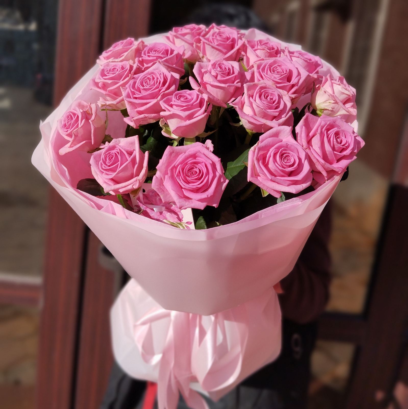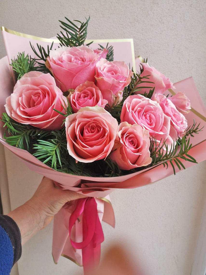 Розовое настроение - Это украинские розы с высотой стебля 50 - 60 см. Сортов розовых роз очень много - от нежно розового (почти белого) до яркого, почти малинового. Мы будем доставлять те, что имеются в наличии в нашем магазине на дату вашего заказа.
