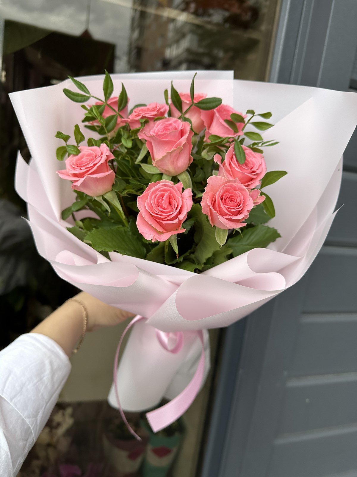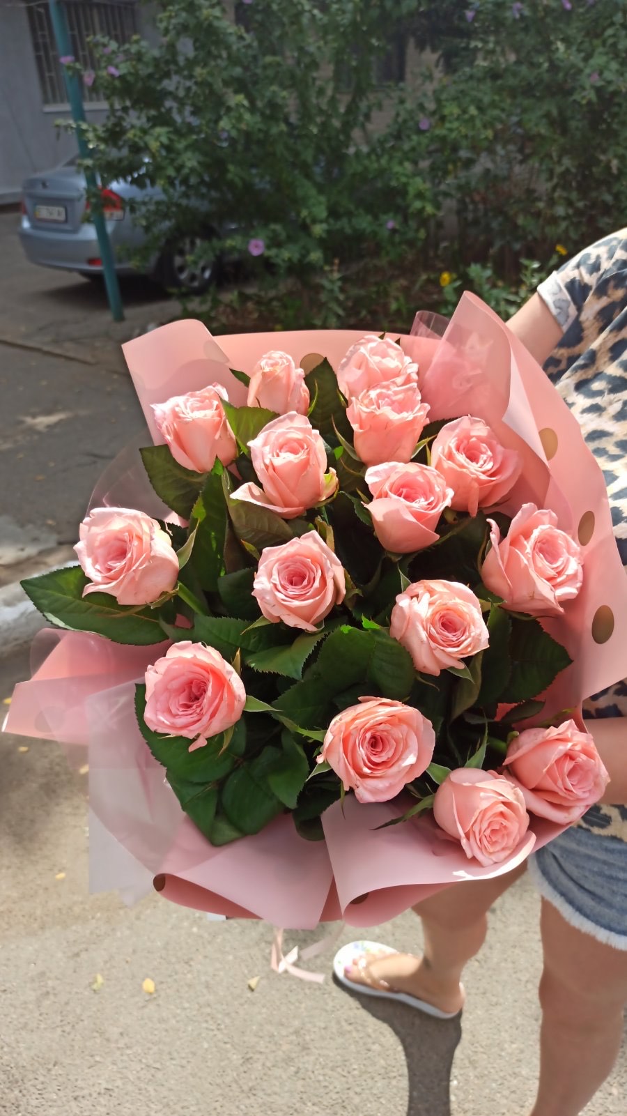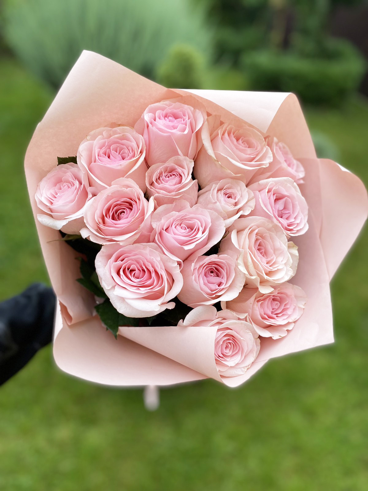 Розы со стеблем стебля 50 - 60 см, в букете и с оформлением таким же нежным не оставят равнодушной ни одну романтичную душу