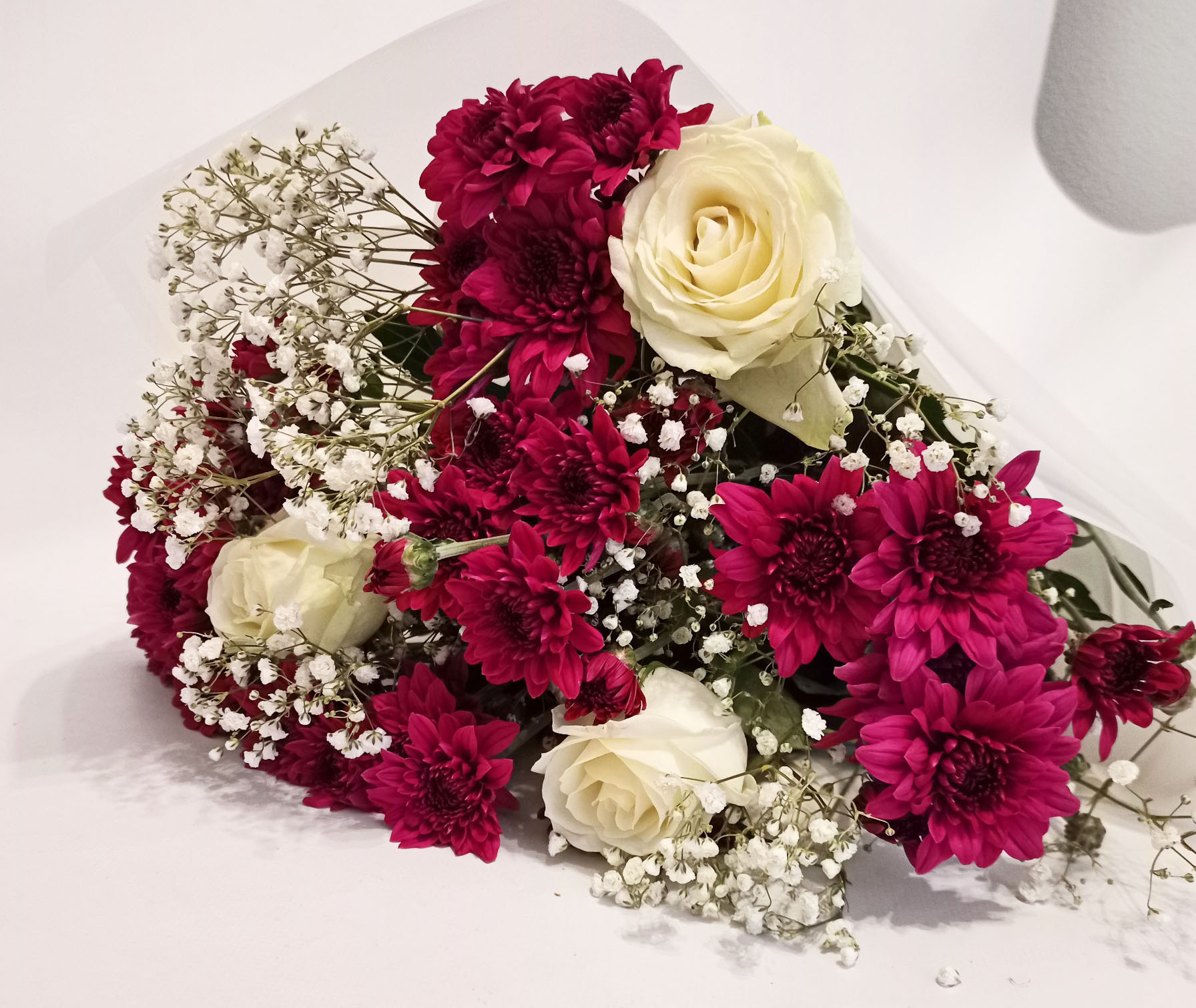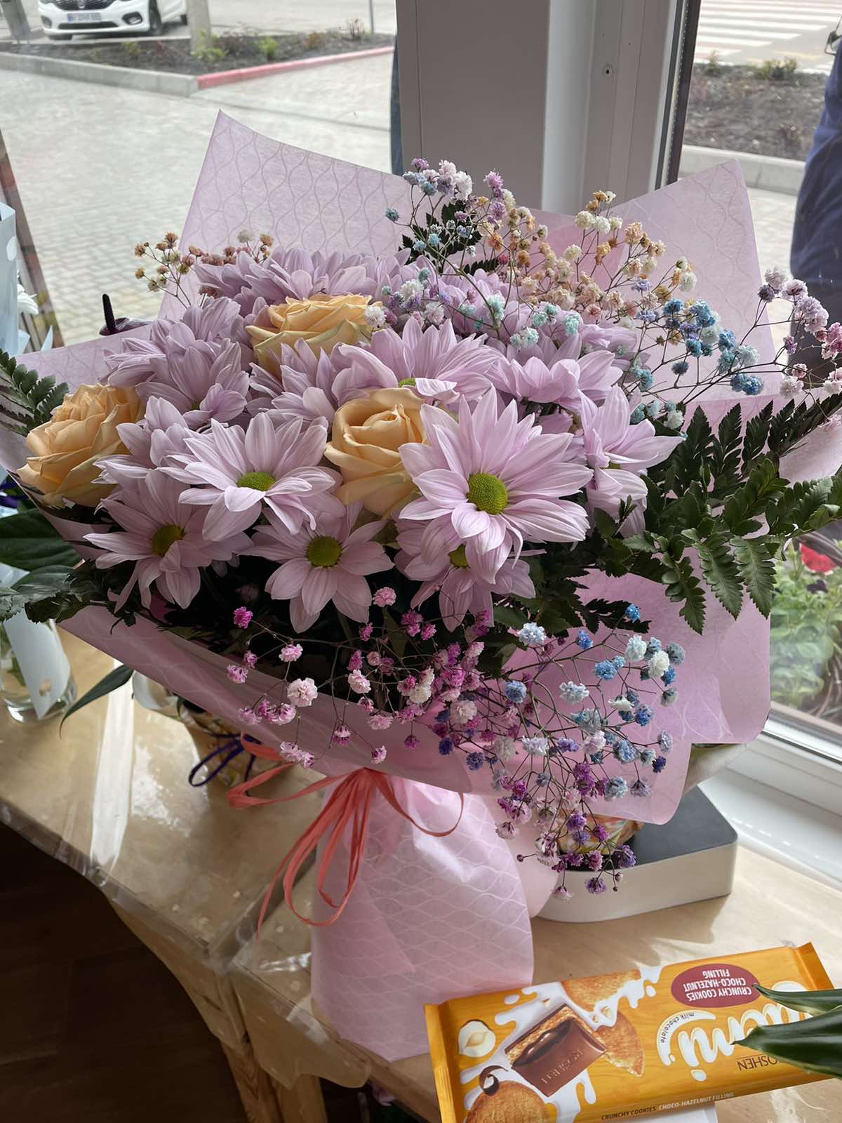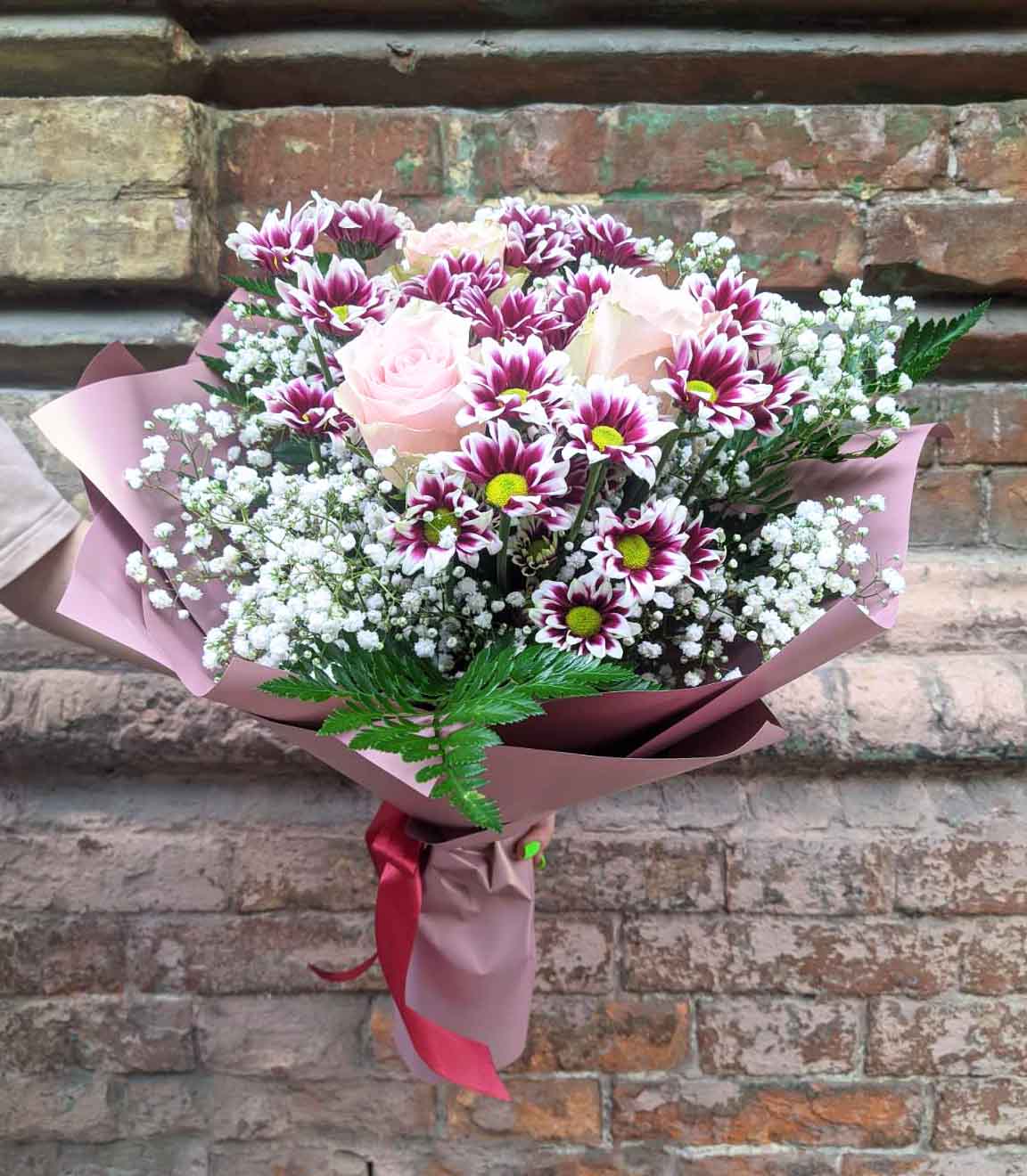 Маленький: 3 х Кремовые розы 4 х Хризантем
