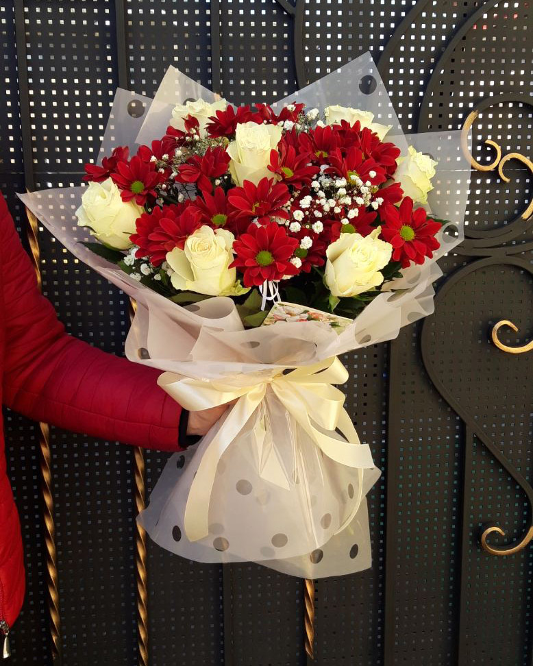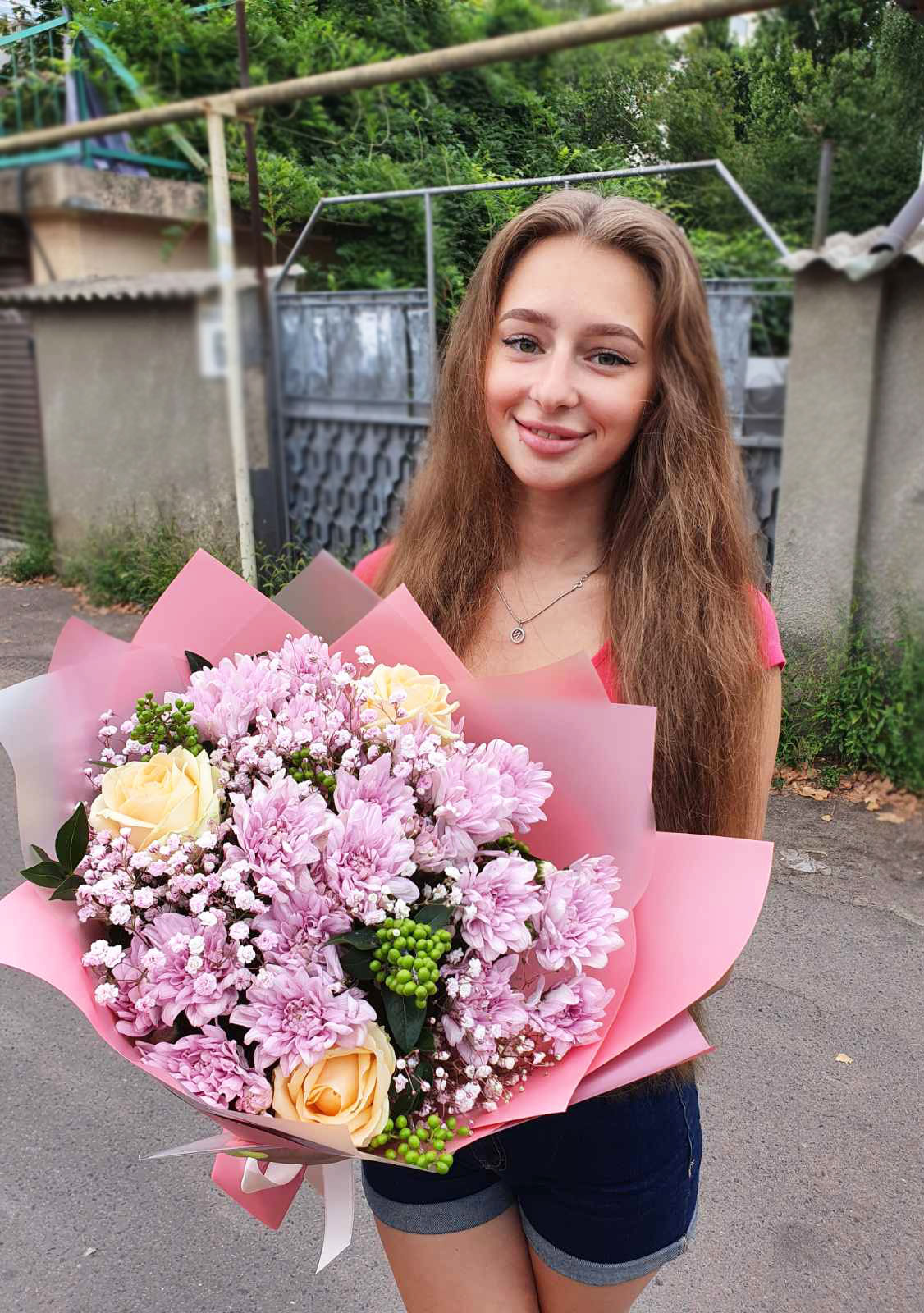 Средний: 5 х Кремовых роз 6 х Хризантем